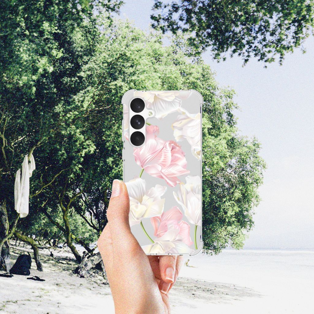 Ben je op zoek naar een uniek telefoonhoesje voor je Samsung Galaxy A55? Dan ben je bij B2C Telecom aan het juiste adres! Speciaal voor jou hebben we dit prachtige Lovely Flowers design in onze collectie hoesjes opgenomen. Het design wordt bedrukt op een Case en is gemaakt van flexibel rubber. Het hoesje is perfect voor de actieve smartphonegebruiker door de opstaande randen/hoeken. Denk aan mensen die veel sporten, reizen of wandelen en net iets meer zekerheid willen als het op hun geliefde telefoon aankomt. Het design wordt alleen aan de bovenkant van het hoesje bedrukt en de randen blijven transparant. Aan de zijkanten zijn uitsparingen gemaakt waardoor je met gemak alle knoppen en poorten kunt bedienen. Wij adviseren om dit hoesje in combinatie met een screenprotector te gebruiken voor een langere levensduur van je telefoon. Wil je dit hoesje nog iets extra's geven? Voeg dan gratis je naam of een quote toe! Is dit design hoesje toch niet helemaal wat je zocht? Ontwerp dan zelf een hoesje in ons ontwerpprogramma.
