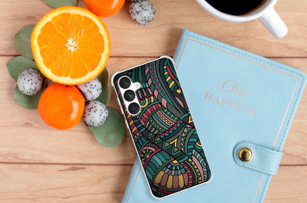 Ben je op zoek naar een uniek telefoonhoesje voor je Samsung Galaxy A55? Dan ben je bij B2C Telecom aan het juiste adres! Speciaal voor jou hebben we dit prachtige Aztec design in onze collectie hoesjes opgenomen. Het design wordt bedrukt op een Doorzichtige Silicone Hoesje en is gemaakt van flexibel rubber. Het hoesje is perfect voor de actieve smartphonegebruiker door de opstaande randen/hoeken. Denk aan mensen die veel sporten, reizen of wandelen en net iets meer zekerheid willen als het op hun geliefde telefoon aankomt. Het design wordt alleen aan de bovenkant van het hoesje bedrukt en de randen blijven transparant. Aan de zijkanten zijn uitsparingen gemaakt waardoor je met gemak alle knoppen en poorten kunt bedienen. Wij adviseren om dit hoesje in combinatie met een screenprotector te gebruiken voor een langere levensduur van je telefoon. Wil je dit hoesje nog iets extra's geven? Voeg dan gratis je naam of een quote toe! Is dit design hoesje toch niet helemaal wat je zocht? Ontwerp dan zelf een hoesje in ons ontwerpprogramma.
