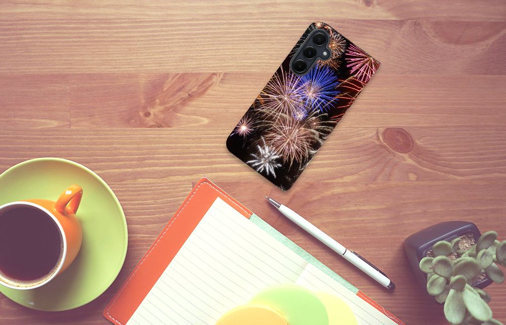 Deze Samsung Galaxy A55 Hippe Standcase levert gegarandeerd Vuurwerk op. Kijk alleen al eens naar de print van siervuurwerk, in zeer veel verschillende kleuren. Als je dit hoesje ziet kun je bijna niet geloven dat sommige gemeenten in Nederland overwegen om vuurwerk te verbieden. Er gebeuren weliswaar ongelukken mee, maar zoiets schitterends als op deze stand case met vuurwerk wil je toch gewoon niet missen. Bovendien beschermt dit hoesje jouw smartphone aan alle kanten. Alle zijden van deze case worden bedrukt en met een speciale standaard is het erg prettig om filmpjes te bekijken. De case wordt aan de binnenzijde met een magneet afgesloten en de houder aan de binnenzijde is van TPU. Onder alle omstandigheden zal deze case met 1 opbergvakje perfect functioneren, ook als je met nieuwjaar vuurwerk aan het afsteken bent. Zorg dan overigens wel dat je zelf ook voldoende afgeschermd bent van het vuurwerk.