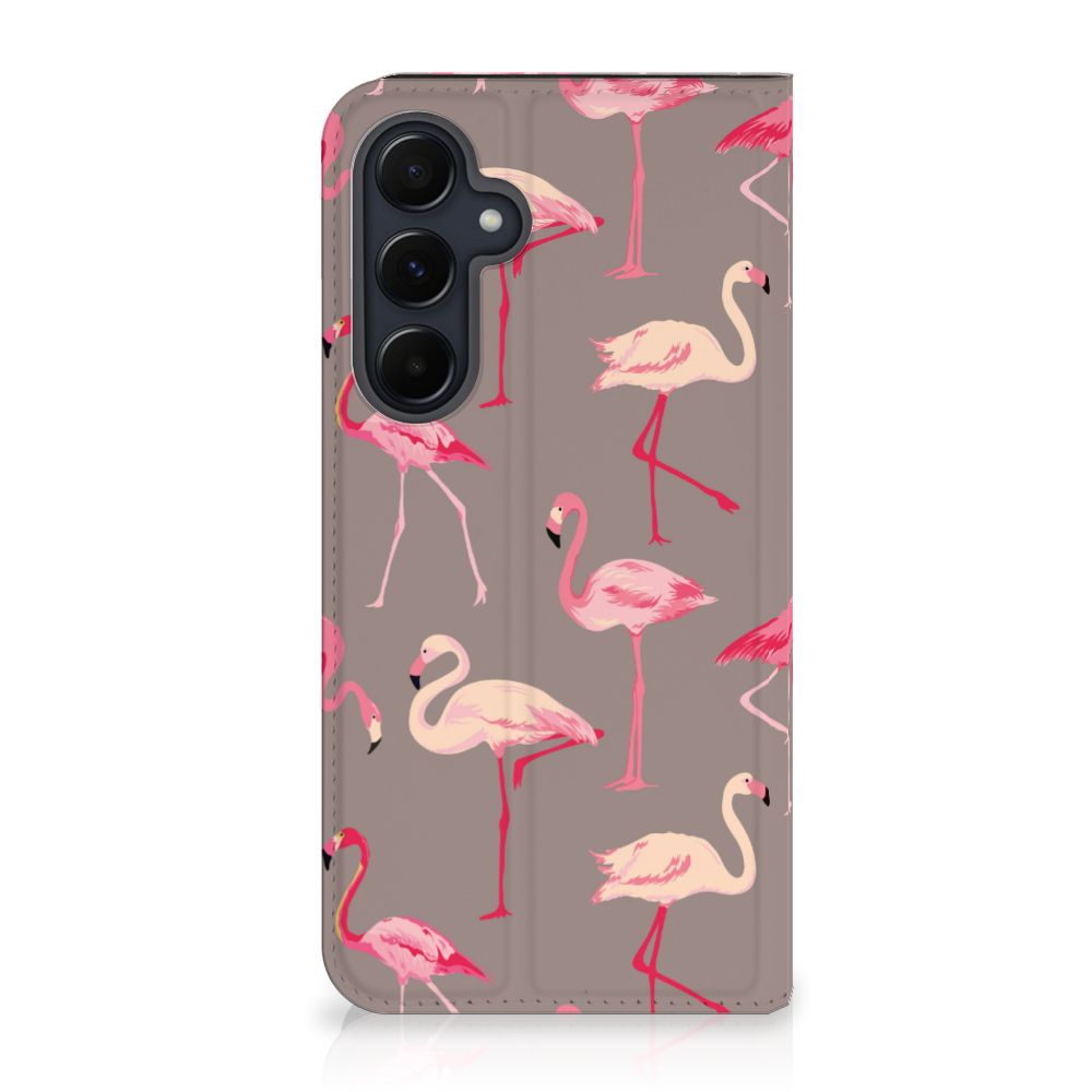 Een Samsung Galaxy A55 Hoesje maken met rode flamingo’s is in vele opzichten bijzonder. De rode flamingo op het hoesje komt oorspronkelijk uit het Caraïbische gebied. Stel dat je in deze regio vakantie viert, dan val je zonder meer op met dit hoesje met flamingo’s. Deze stand case biedt bescherming voor alle zijden van je telefoon. Jouw smartphone ligt goed opgeborgen in de TPU houder aan de binnenzijde en in dit gedeelte van het hoesje met flamingo’s zit de magnetische sluiting. De lichtroze flamingo, ook present op deze case, wordt tegenwoordig als aparte soort gezien naast de rode flamingo. De stand case met flamingo’s heeft vakjes voor pasjes en is op maat gemaakt.