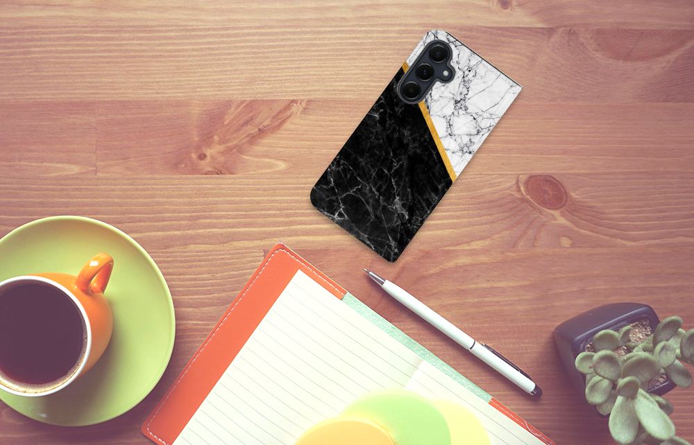 Dit design hoesje met zwartwit marmer is zeer geschikt voor jouw kostbare telefoon. Vanwege zijn prachtige lichtval en vastheid is marmer zeer gewild als bouwmateriaal. Op jouw smartphone kun je lange tijd bouwen als jij kiest voor deze hele mooie Samsung Galaxy A55 Standcase. Naast het zwart-witte marmer zijn er de diverse marmersoorten in een ruim kleurenpallet te krijgen. Deze stand case met marmer in zwart-wit wordt bedrukt op alle zijden. De case beschikt over een vakje voor een pasje en toebehoren en een magnetische sluiting aan de binnenzijde. Verder heeft de case in zwart wit marmer een houder van TPU. Wij hebben onze designer veel vrijheid gegeven met het ontwerpen dit mooie hoesje. Het resultaat zie je terug in deze stand case met zwartwit marmer, dat de ideale bescherming is voor jouw smartphone.