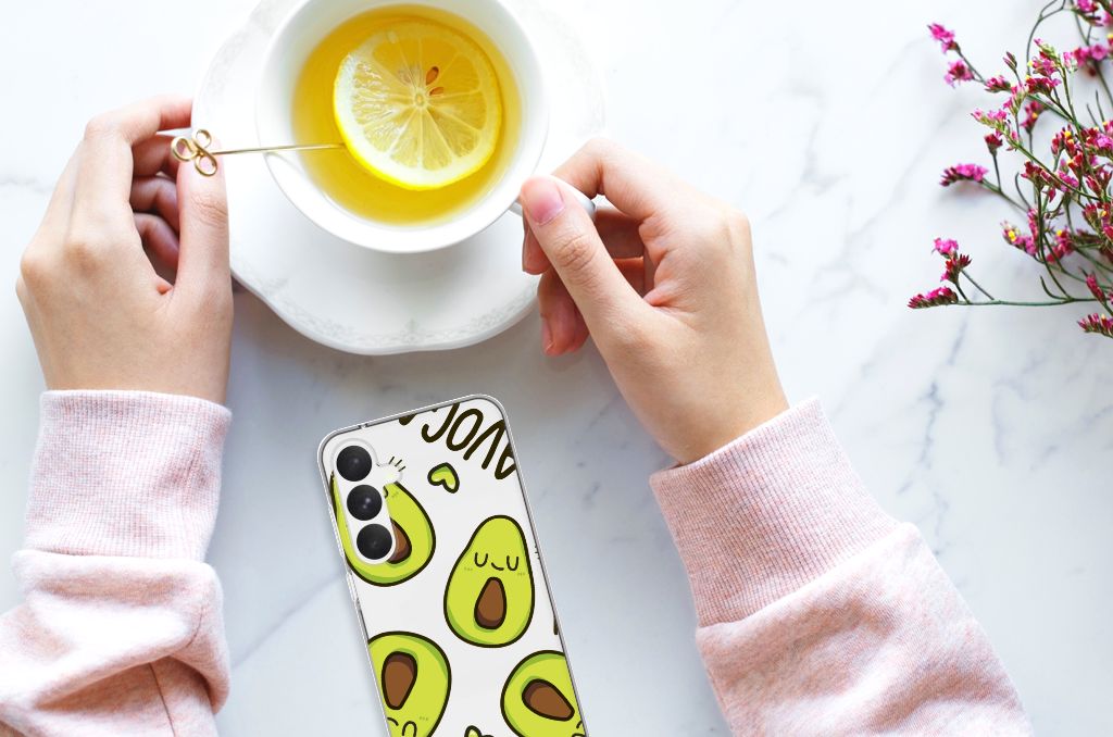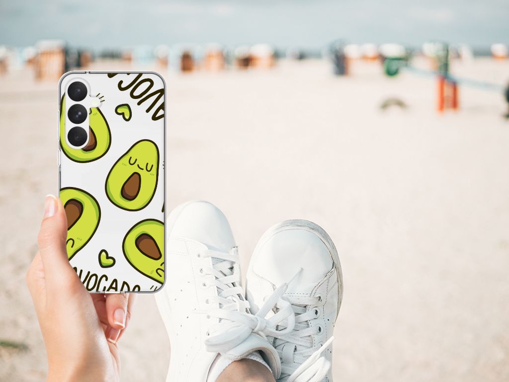 Avocado’s zijn niet alleen heel erg goed voor je, ze zijn ook super leuk op je telefoonhoesje. Dit unieke design vol schattige avocado’s zal jou en iedereen om je heen meteen opvrolijken. Nog een voordeel van dit design: deze avocado’s bederven nooit! Dit leuke Avocado Singing-ontwerp staat op een Telefoonhoesje met Naam voor de Samsung Galaxy A55. Met deze vrolijke groene vruchten op je hoesje val jij zeker op. TPU is flexibel en onbreekbaar. Zo is je telefoon aan de achterkant en de randen heel goed beschermd. De case is aan de bovenkant bedrukt, de randen blijven transparant. Het TPU-hoesje is perfect te combineren met een screenprotector, zo zijn je telefoon en je beeldscherm perfect beschermd.