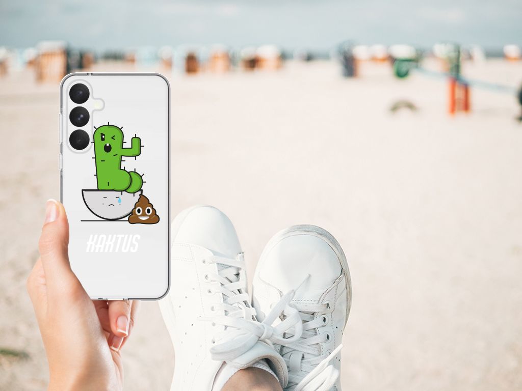 De cactus is leuk, hip en makkelijk te verzorgen. Maar wie denkt dat hij helemaal zonder aandacht kan, heeft het mis. Op dat moment komt hij in opstand, zoals op dit grappige design hoesje met cactus te zien is. Deze Telefoonhoesje met Naam met Cactus Poo design is van alle markten thuis. Het is een zeer veilig maar ook prachtig en praktisch hoesje. Dat bewijzen het flexibele en schokabsoberende materiaal en het lichte gewicht. De meeste cactussen komen uit Amerika. Daar groeien ze in hun natuurlijke omgeving, de woestijn en steppen. Maar ze groeien ook in tropische regenwouden. Dit geeft aan dat de cactus een plant is die zich makkelijk aanpast. Dat geldt dus helaas niet voor de cactus op dit tpu hoesje, maar jouw Samsung Galaxy A55 is wel goed beschermd. Valt de telefoon op de grond, dan beschermen de opstaande randen van de case het touchscreen. Alleen de bovenkant van dit hoesje wordt bedrukt met de geinige kaktus. De zijkanten van de TPU case blijven transparant.