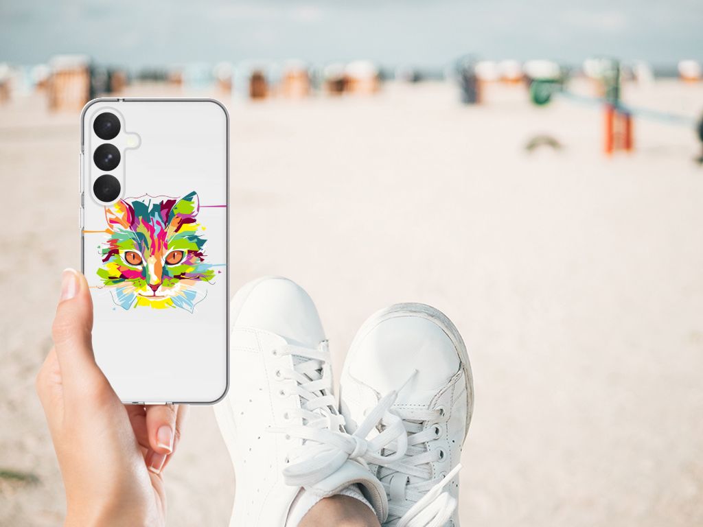 Ben je op zoek naar een uniek telefoonhoesje voor je Samsung Galaxy A55? Dan ben je bij B2C Telecom aan het juiste adres! Speciaal voor jou hebben we dit prachtige Cat Color design in onze collectie hoesjes opgenomen. Het design wordt bedrukt op een Telefoonhoesje met Naam en is gemaakt van flexibel rubber. Het design wordt alleen aan de bovenkant van het hoesje bedrukt en de randen blijven transparant. Aan de zijkanten zijn uitsparingen gemaakt waardoor je met gemak alle knoppen en poorten kunt bedienen. Wij adviseren om dit hoesje in combinatie met een screenprotector te gebruiken voor een langere levensduur van je telefoon. Wil je dit design hoesje nog iets extra's geven? Voeg dan gratis je naam of een quote toe! Is dit design hoesje toch niet helemaal wat je zocht? Ontwerp dan zelf een hoesje in ons ontwerpprogramma.