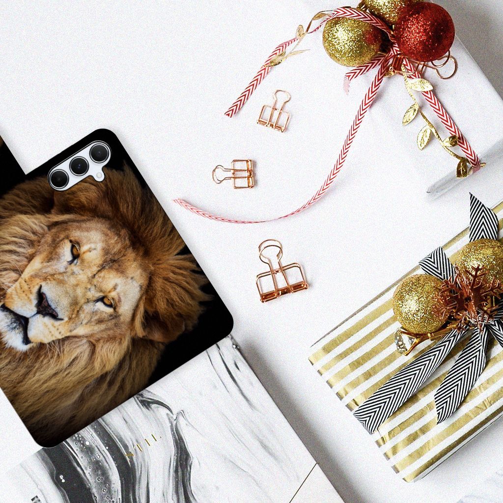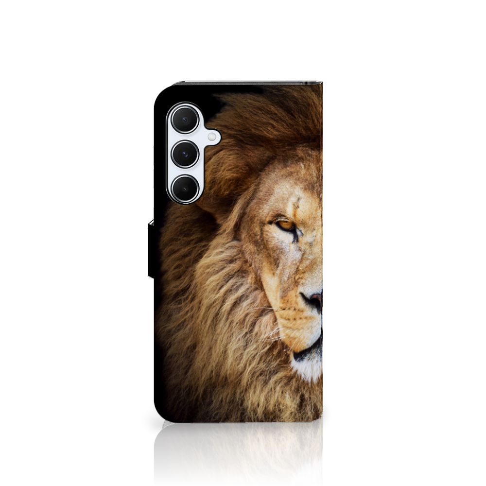 Samsung Galaxy A55 Telefoonhoesje met Pasjes en met magnetische sluitclip Leeuw