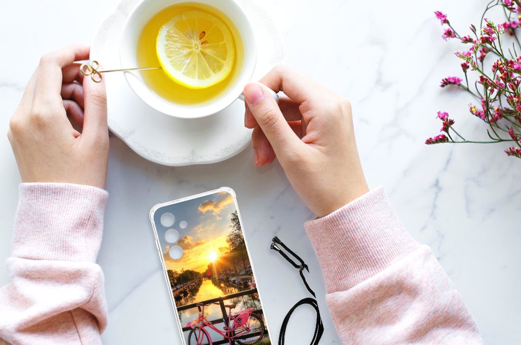 Ben je op zoek naar een uniek telefoonhoesje voor je Samsung Galaxy A55? Dan ben je bij B2C Telecom aan het juiste adres! Speciaal voor jou hebben we dit prachtige Amsterdamse Grachten design in onze collectie hoesjes opgenomen. Het design wordt bedrukt op een Telefoonhoesje met valbescherming en is gemaakt van flexibel rubber. Het hoesje is perfect voor de actieve smartphonegebruiker door de opstaande randen/hoeken. Denk aan mensen die veel sporten, reizen of wandelen en net iets meer zekerheid willen als het op hun geliefde telefoon aankomt. Het design wordt alleen aan de bovenkant van het hoesje bedrukt en de randen blijven transparant. Aan de zijkanten zijn uitsparingen gemaakt waardoor je met gemak alle knoppen en poorten kunt bedienen. Wij adviseren om dit hoesje in combinatie met een screenprotector te gebruiken voor een langere levensduur van je telefoon. Wil je dit hoesje nog iets extra's geven? Voeg dan gratis je naam of een quote toe! Is dit design hoesje toch niet helemaal wat je zocht? Ontwerp dan zelf een hoesje in ons ontwerpprogramma.