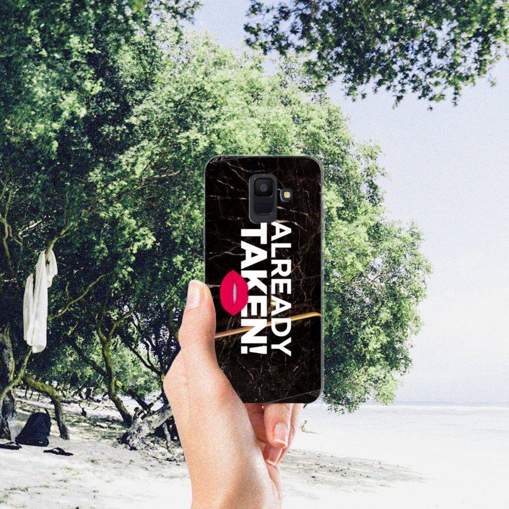 Met deze Samsung Galaxy A6 (2018) Siliconen hoesje met naam met Already Taken Black tekst maak je duidelijk dat jouw smartphone een kostbaar bezit is, waar je zeer lang over wilt beschikken. Je telefoon neem je waarschijnlijk vaak ter hand, dus dan zal de boodschap als je over dit hoesje beschikt zeker weten overkomen. De TPU case wordt alleen aan de bovenkant bedrukt en is zeer flexibel. De randen van het hoesje blijven transparant. Wil je een eigen tekst op je hoesje zetten? Dit kan ook, met onze Phone Case Designer. Deze unieke ontwerpmodule is ook geschikt om het design uit te breiden met foto’s, effecten en patronen.