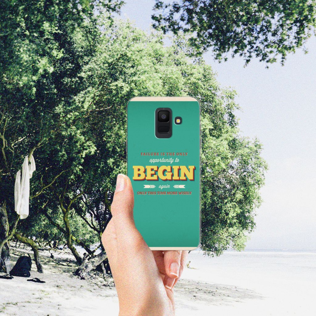 Ben je op zoek naar een uniek telefoonhoesje voor je Samsung Galaxy A6 (2018)? Dan ben je bij B2C Telecom aan het juiste adres! Speciaal voor jou hebben we dit prachtige Quote Begin design in onze collectie hoesjes opgenomen. Het design wordt bedrukt op een Siliconen hoesje met naam en is gemaakt van flexibel rubber. Het design wordt alleen aan de bovenkant van het hoesje bedrukt en de randen blijven transparant. Aan de zijkanten zijn uitsparingen gemaakt waardoor je met gemak alle knoppen en poorten kunt bedienen. Wij adviseren om dit hoesje in combinatie met een screenprotector te gebruiken voor een langere levensduur van je telefoon. Wil je dit design hoesje nog iets extra's geven? Voeg dan gratis je naam of een quote toe! Is dit design hoesje toch niet helemaal wat je zocht? Ontwerp dan zelf een hoesje in ons ontwerpprogramma.