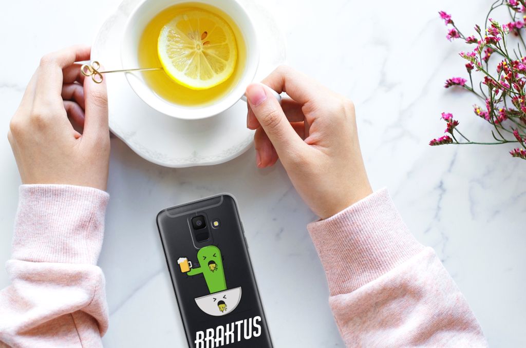 Voor de stappers onder ons hebben we dit hele grappige hoesje ontworpen. Deze Braktus case geeft perfect het gevoel weer als jij in de ochtend wakker wordt na een weekendje carnaval vieren: duf en waardeloos. Hopelijk was dit het wel waard en heb je een gezellige tijd gehad. Als aandenken zou je deze Telefoonhoesje met Naam met cactus print kunnen bestellen. Deze design case beschermt jouw Samsung Galaxy A6 (2018) vooral aan de achterkant en zijkanten, het scherm blijft deels onbeschermd. Verder heeft het telefoonhoesje opstaande randen, zodat het toestel bij een val de grond niet direct raakt. Een handig en flexibel hoesje, dat altijd in je broekzak past. Bescherming heb je met carnaval natuurlijk wel nodig, want tijdens het hossen kan de telefoon zomaar uit je outfit vallen. Bestel daarom deze TPU case, gemaakt van schokabsorberend materiaal. Alleen de bovenkant van de case wordt bedrukt en de randen blijven transparant.
