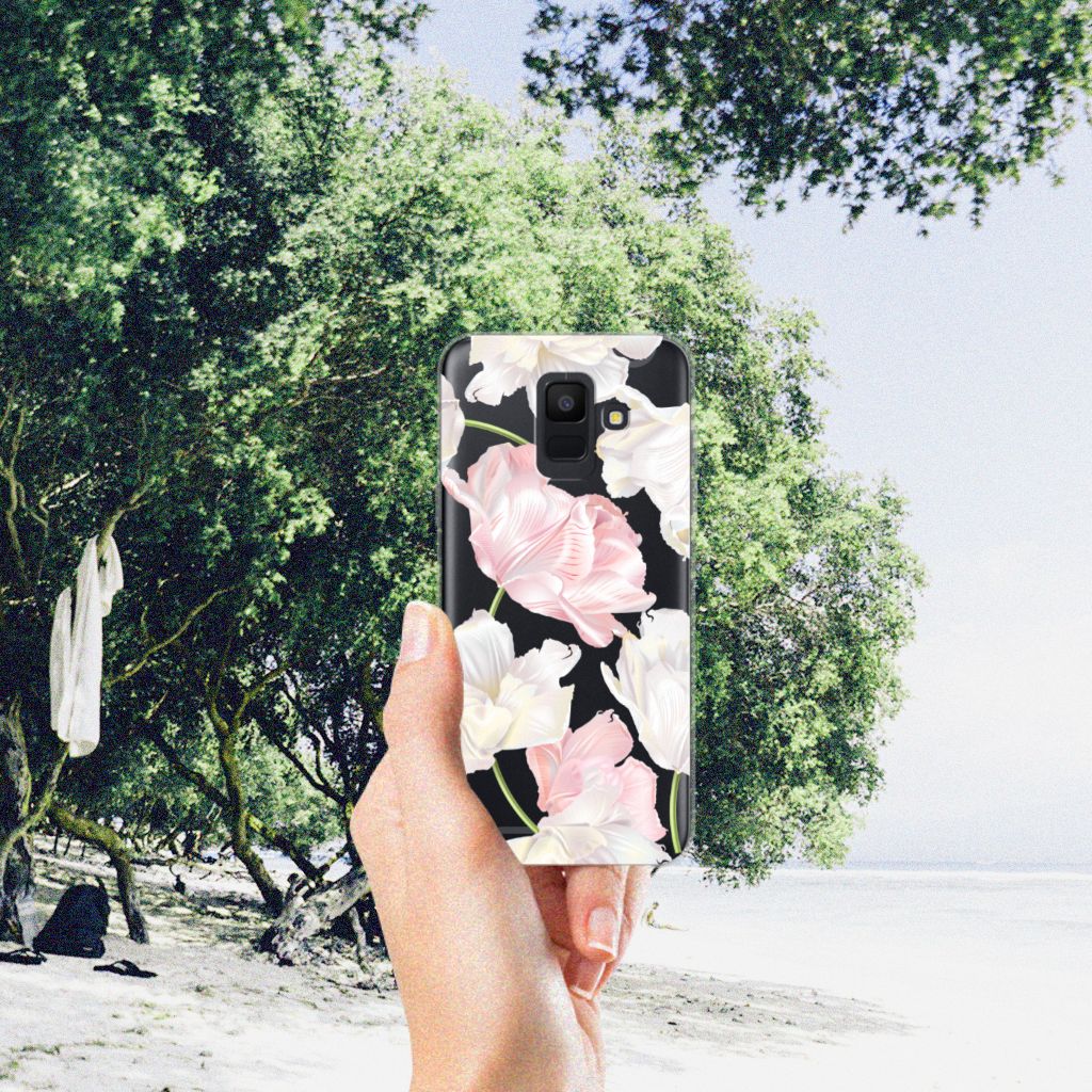 Een bosje bloemen doet een mens (en zijn smartphone) goed. De witte en roze bloemen op deze Samsung Galaxy A6 (2018) TPU Case geven jouw smartphone een zeer mooie uitstraling. Je wordt er ook meteen een stuk rustiger van als je aan het appen of aan het bellen bent. Valt dan je telefoon op de grond, dan zal er dankzij de tpu case met het design Lovely Flowers ontstaan. Helemaal niet als je er een screenprotector bij hebt gekocht. Onze tpu cases met roze en witte bloemen zien er zeer prettig uit en zijn heel praktisch, getuige onder meer de opstaande randen en het flexibele materiaal. Alleen de achterkant van de tpu case wordt bedrukt met roze en witte bloemen. Op deze tpu case kun je trouwens ook een eigen ontwerp zetten. In een paar simpele stappen ontwerp je zelf een stand case met daarop jouw favoriete bloemen.