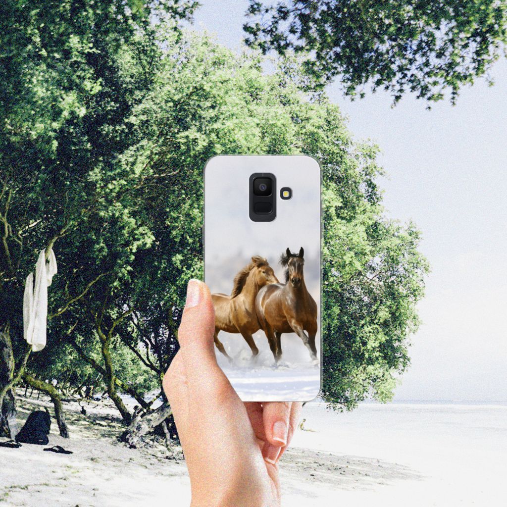 Voor de paardenliefhebbers onder ons hebben we onze collectie uitgebreid met dit design hoesje met print van paarden. Vroeger hield de mens vooral werkpaarden, inmiddels hebben we vriendschap gesloten met het paard. Vandaar dat het ook een favoriet dier is op onze smartphonehoesjes, zoals deze tpu case. Een TPU Hoesje voor de Samsung Galaxy A6 (2018) met Paarden is niet alleen super mooi en chique, maar ook nog eens zeer flexibel. Verder is de case schokabsorberend en heeft het opstaande randen. Zie je liever je eigen paard terug op een hoesje. Dat kan! Door zelf een uniek hoesje te ontwerpen, met eigen foto’s en teksten. De TPU case wordt aan de bovenzijde bedrukt, de zijkanten blijven transparant.