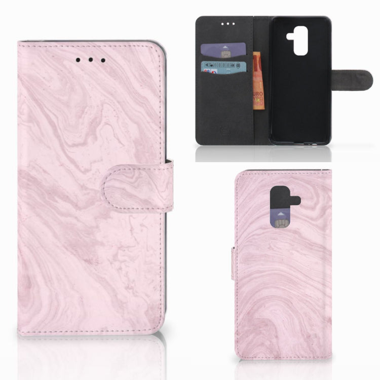 Samsung Galaxy A6 Plus 2018 Bookcase met magnetische sluitclip Marble Pink