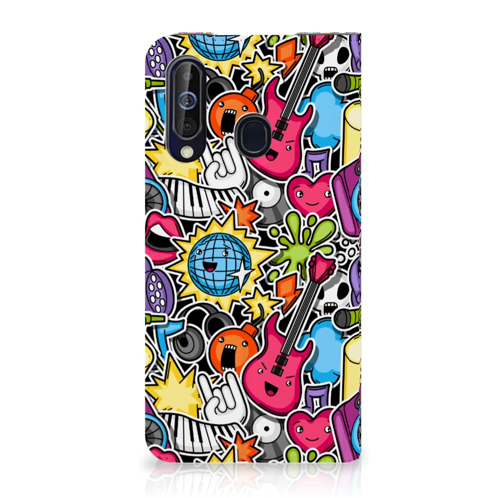 Samsung Galaxy A60 Stand Case Zwart Roze Vormen