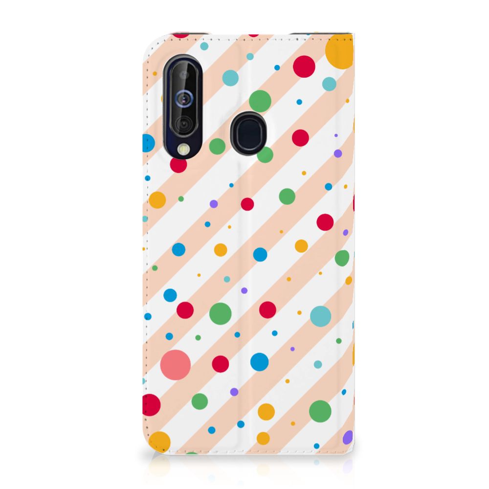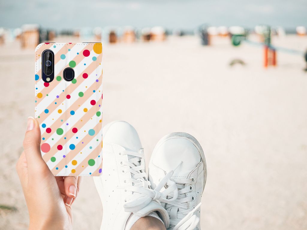 Een Samsung Galaxy A60 Hoesje met Magneet met verschillende kleuren stippen is een schitterende bescherming van jouw smartphone. De stand case met het design Dots in alle kleuren van de regenboog komt voor jou als geroepen. Maak je geen gebruik van dit zeer mooie hoesje, dan kan het met jouw smartphone een beetje beroerd aflopen. Dit mooie stand hoesje met verschillende kleuren stippen zorgt voor een volledige bescherming van je smartphone en wordt aan alle zijden bedrukt. Dankzij de speciale standaard kun je rustig achteroverleunend filmpjes bekijken terwijl je je handen vrij hebt. Verder is de houder aan de binnenzijde van TPU. Jouw telefoon is dus zeer goed opgeborgen en kan geen kant op. Met een hoesje met stippen in verschillende kleuren op alle zijden blijft jouw telefoon volledig in tact. Heb je liever een stand case met stippen in andere opvallende kleuren? Ontwerp dan zelf case met je eigen foto’s en teksten!