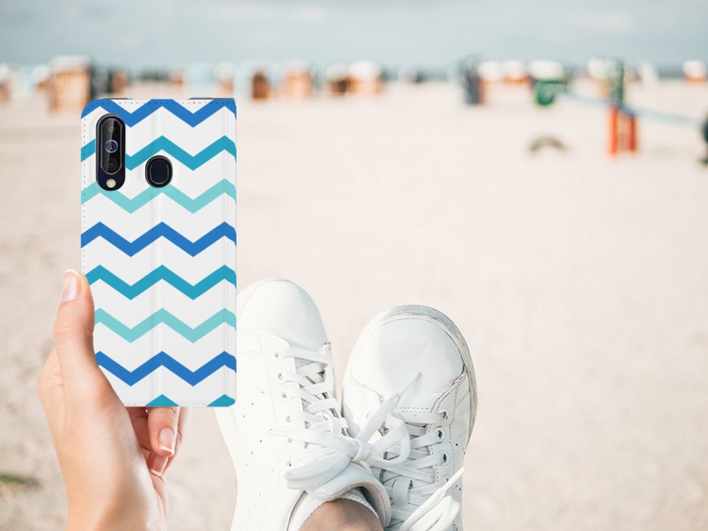 Samsung Galaxy A60 Hoesje met Magneet Zigzag Blauw