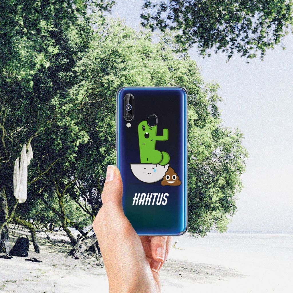 De cactus is leuk, hip en makkelijk te verzorgen. Maar wie denkt dat hij helemaal zonder aandacht kan, heeft het mis. Op dat moment komt hij in opstand, zoals op dit grappige design hoesje met cactus te zien is. Deze Telefoonhoesje met Naam met Cactus Poo design is van alle markten thuis. Het is een zeer veilig maar ook prachtig en praktisch hoesje. Dat bewijzen het flexibele en schokabsoberende materiaal en het lichte gewicht. De meeste cactussen komen uit Amerika. Daar groeien ze in hun natuurlijke omgeving, de woestijn en steppen. Maar ze groeien ook in tropische regenwouden. Dit geeft aan dat de cactus een plant is die zich makkelijk aanpast. Dat geldt dus helaas niet voor de cactus op dit tpu hoesje, maar jouw Samsung Galaxy A60 is wel goed beschermd. Valt de telefoon op de grond, dan beschermen de opstaande randen van de case het touchscreen. Alleen de bovenkant van dit hoesje wordt bedrukt met de geinige kaktus. De zijkanten van de TPU case blijven transparant.