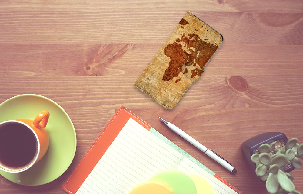 Samsung Galaxy A7 (2018) Flip Cover met pasjes Wereldkaart