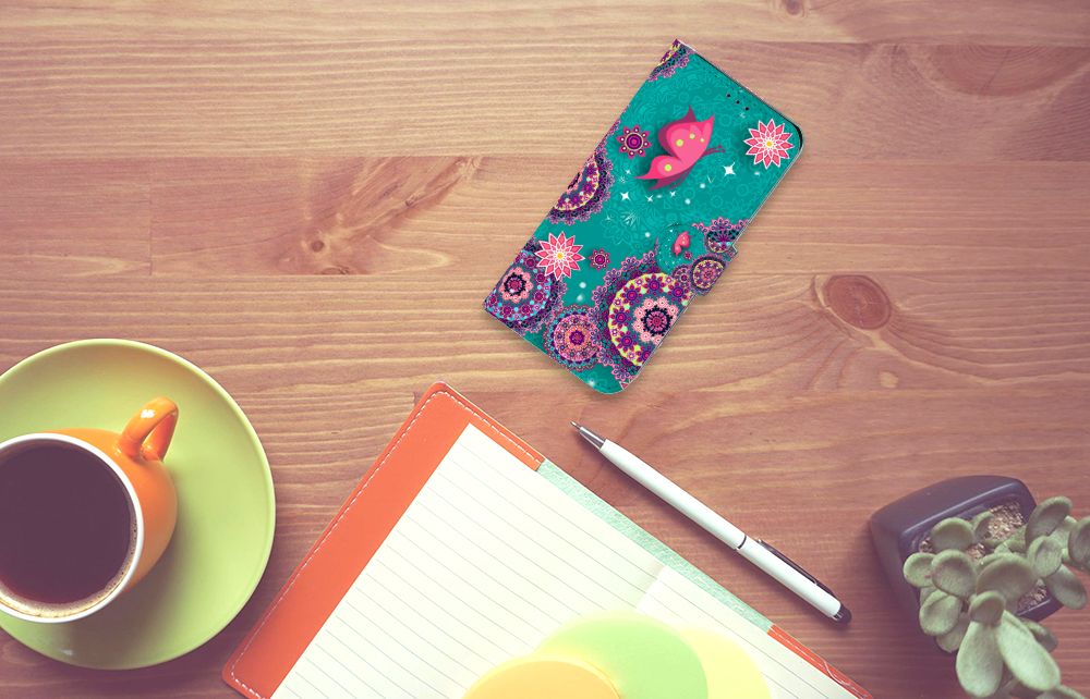 Met deze bookstyle case val jij sowieso op. De vlinders en mandala-achtige cirkels hebben verschillende heldere en opvallende kleuren. Het design op dit Samsung Galaxy A7 (2018) Hoesje heeft bovendien iets hippie-achtigs. De heldere kleuren en patronen worden op dit telefoonhoesje met behulp van onze geavanceerde printer gedrukt. Deze printer kan alle zijden van de bookstyle case bedrukken. Zelfs het magnetische lipje wordt bedrukt met het design van cirkels en vlinders. Dit wordt bovendien uitgevoerd met duurzame inkt, zodat het hele hoesje duurzaam is. Deze bookstyle case zal langer meegaan dan de meeste design hoesjes. Dit is goed voor het milieu en voor jouw portemonnee.