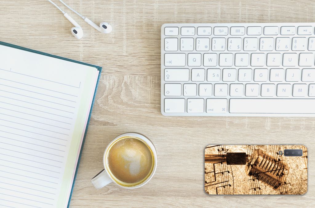 Ben je muzikant, dan is dit design hoesje met Bladmuziek wellicht echt iets voor jou. Met de intrede van nieuwe media wordt de rol van papieren bladmuziek teruggedrongen. Steeds vaker treft men 'bladmuziek' op een beeldschermapparaat, zoals een tablet-pc, e-reader of iPad aan. Gelukkig maar, want als er geen nieuwe media zouden zijn, hadden wij ook nooit onze Phone Case Designer kunnen ontwerpen. Met deze unieke ontwerpmodule kun je jouw favoriete band of artiest op je smartphone hoesje zetten, maar je kunt ook gaan voor dit prachtige design hoesje met print van bladmuziek. Het design staat op een Samsung Galaxy A7 (2018) Siliconen Hoesje met foto. Deze case beschermt jouw telefoon vooral aan de achterzijde en zijkanten en is zeer flexibel. Het hoesje blijft aan de zijkanten transparant, de bovenkant is geheel bedrukt. TPU is onbreekbaar materiaal, dat zeer schokabsorberend is. Het hoesje past altijd in je broekzak en combineert uitstekend met een screenprotector.
