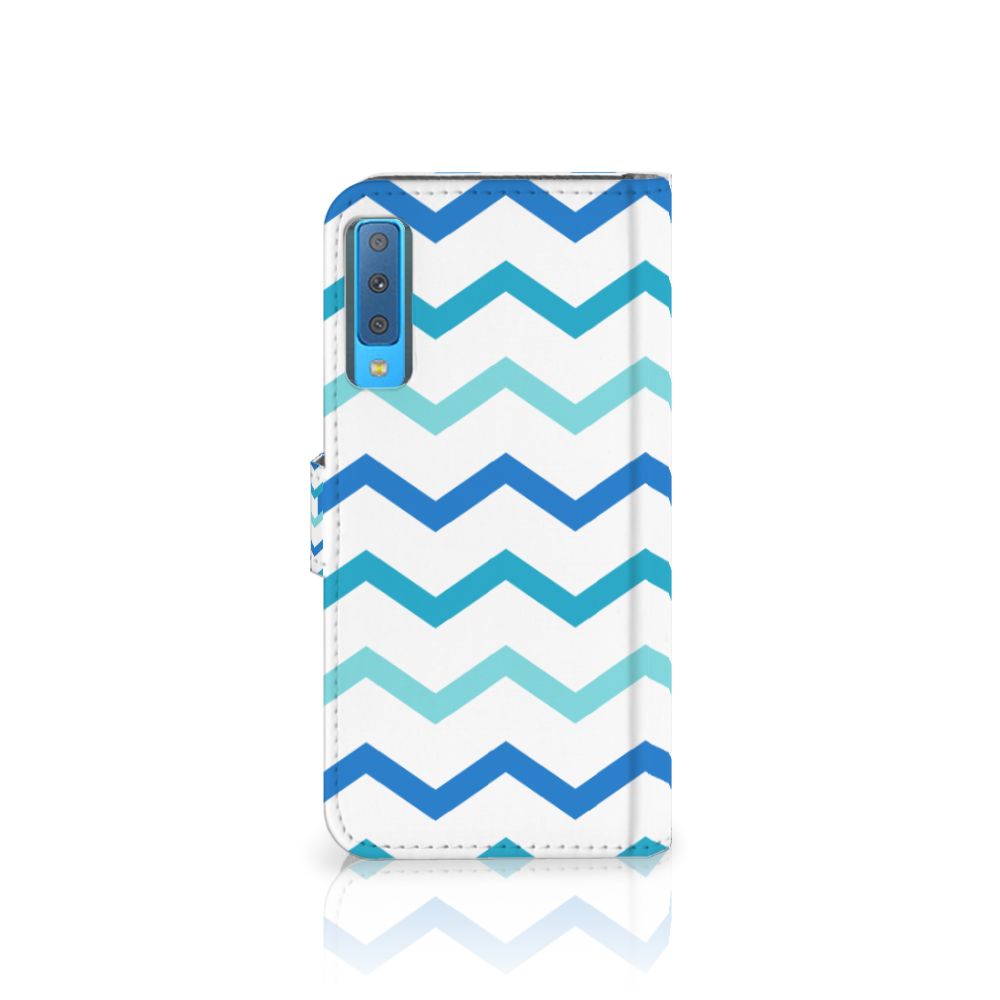Dit zigzag blauwe design hoesje is speciaal ontworpen voor jou. We hebben bewust verschillende stijlen blauw gebruikt, zodat er voldoende sprake is van variatie. Dit blauwwitte Telefoon Hoesje ziet er super strak uit. Dat kan ook niet anders, als je weet dat onze zeer talentvolle designer er hoogstpersoonlijk voor verantwoordelijk is. Hij schudt wekelijks nieuwe designs uit zijn mouw en dit zigzag blauwe hoesje is een van zijn fraaiste creaties. Een heel dik design hoesje, al zeggen we het zelf. Valt dit blauwwitte design hoesje goed bij jou? Bestel het dan vandaag nog en je hebt het morgen in huis. Het design staat op een boekhoesje. Dit smartphonehoesje beschermt jouw Samsung Galaxy A7 (2018) aan alle zijden en beschikt over verschillende opbergvakjes voor pasjes en briefgeld. De case sluit perfect af met het lipje aan de buitenkant. De houder aan de binnenzijde is van TPU. Alle zijden van het hoesje worden bedrukt, inclusief het lipje.