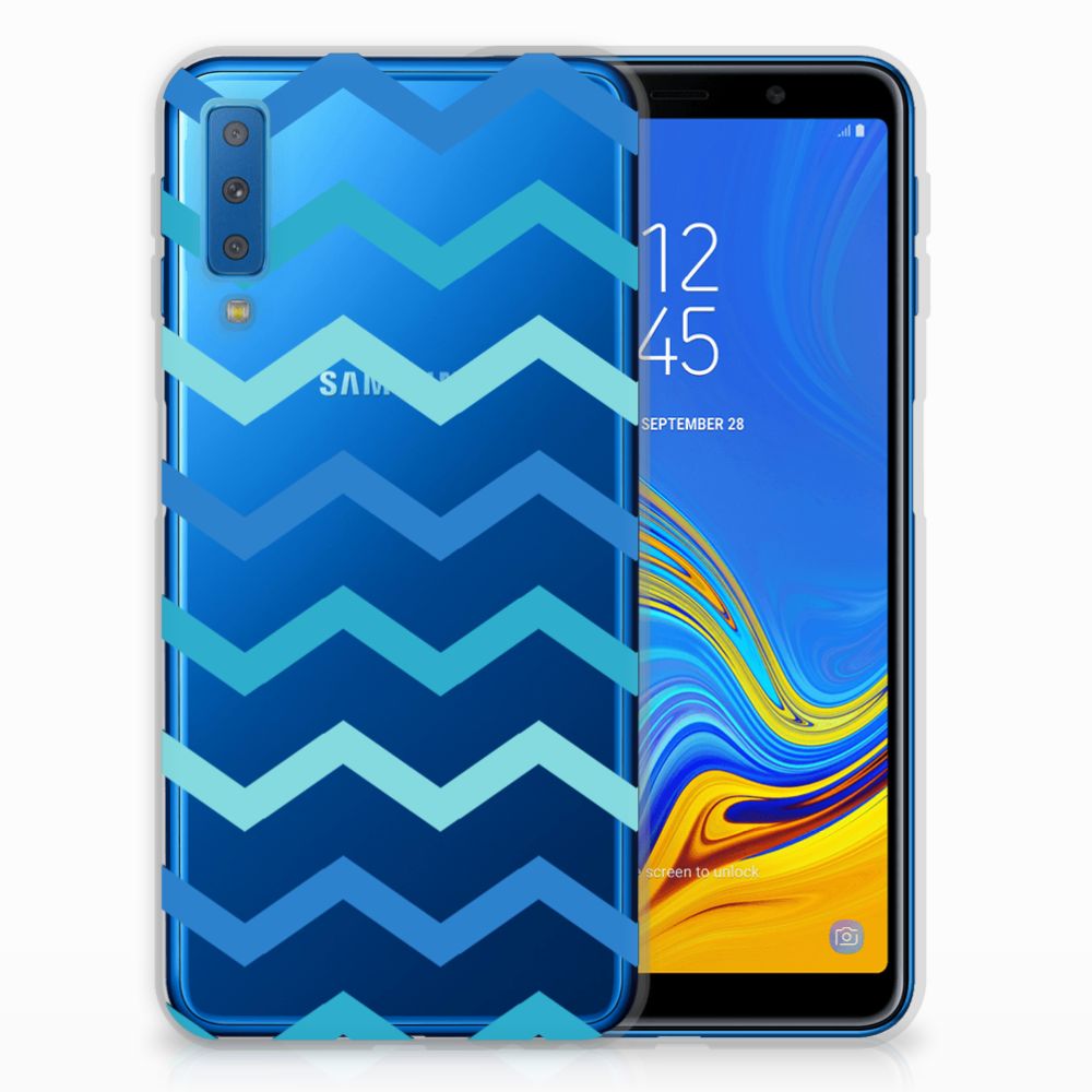 Dit zigzag blauwe design hoesje is speciaal ontworpen voor jou. We hebben bewust verschillende stijlen blauw gebruikt, zodat er voldoende sprake is van variatie. Dit blauwwitte TPU bumper ziet er super strak uit. Dat kan ook niet anders, als je weet dat onze zeer talentvolle designer er hoogstpersoonlijk voor verantwoordelijk is. Hij schudt wekelijks nieuwe designs uit zijn mouw en dit zigzag blauwe hoesje is een van zijn fraaiste creaties. Een heel dik design hoesje, al zeggen we het zelf. Valt dit blauwwitte design hoesje goed bij jou? Bestel het dan vandaag nog en je hebt het morgen in huis. Het design staat op een TPU case. Dit hoesje wordt alleen aan de bovenkant bedrukt en is zeer flexibel. De randen van het hoesje blijven transparant en worden niet bedrukt. Met dit hoesje past jouw Samsung Galaxy A7 (2018) altijd in je broekzak.