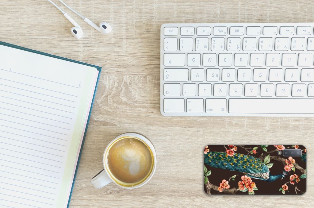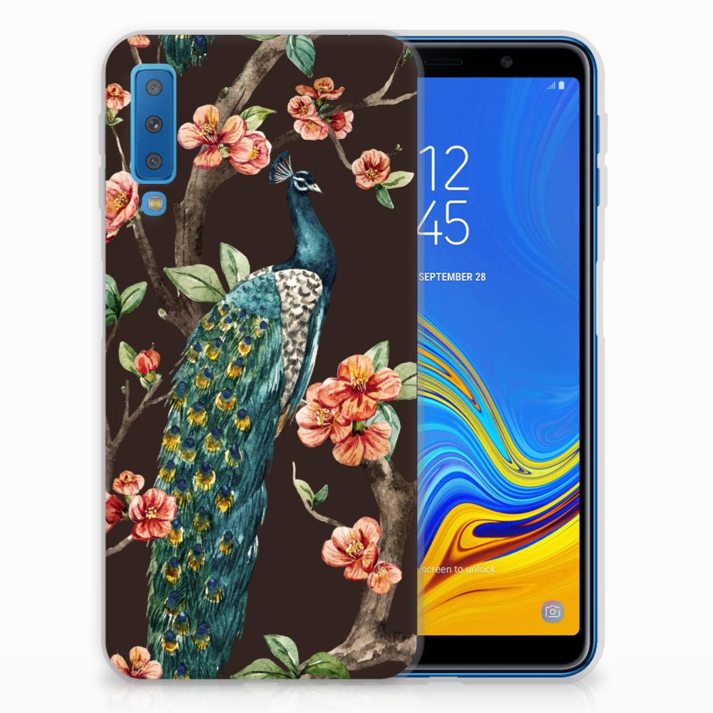 Op deze Samsung Galaxy A7 (2018) TPU Hoesje kun jij zo trots als een pauw zijn. Met dit geweldige design hoesje met een Pauw met Bloemen erop kun jij je smartphone voor zeer lange tijd beschermen. Deze tpu case is zeer duurzaam en gemaakt van zeer elastisch materiaal. Je bent zeer flexibel met deze TPU case met print van een pauw. Met een tpu case met fleurige bloemen en trotse pauwen wordt jouw telefoon er een stuk mooier op. De onderscheidende case heeft opstaande randen aan de voorzijde en wordt alleen aan de bovenzijde bedrukt. Zie jij liever jouw eigen huisdier op een telefoonhoesje? Dan adviseren we je zelf een hoesje te ontwerpen met onze unieke Phone Case Designer.