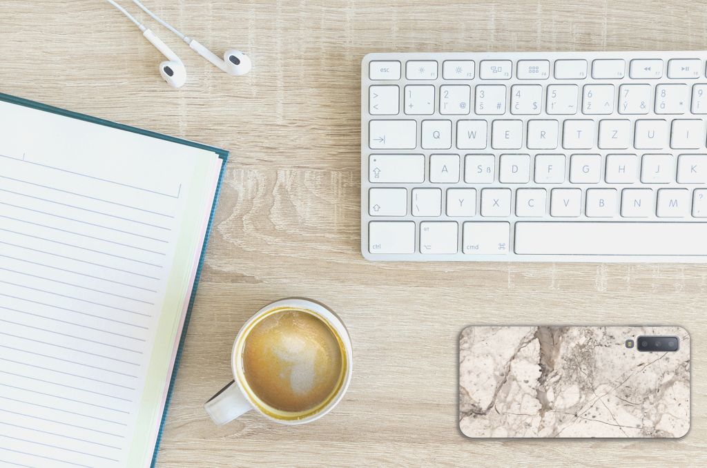 Dit design hoesje met Marmer Beige is voor de artistieke personen onder ons. De Grieken en Romeinen wisten het steen al te waarderen door het als bouw- en bekledingsmateriaal toe te passen. Naast het witte Carrara marmer met haar zacht grijze geaderde belijning zijn de diverse marmersoorten in een ruim kleurenpallet te krijgen. We hebben verschillende kleuren op design hoesjes gezet, zoals in dit geval beige marmer. Dit is een Samsung Galaxy A7 (2018) TPU Siliconen Hoesje met marmer in beige kleur. Het marmer wordt bedrukt op de voorkant van een tpu case, die beschikt over opstaande randen aan de voorkant en goed combineert met een screenprotector. De rijkheid aan kleuren en varianties in afwerking geeft designers de vrijheid om met marmer hele mooie architectonische projecten te realiseren. Wij hebben onze designer ook veel vrijheid gegeven. Het resultaat zie je terug in deze tpu case met beige marmer, die jouw smartphone goed beschermt. De zijkanten van de case worden niet bedrukt met marmer.