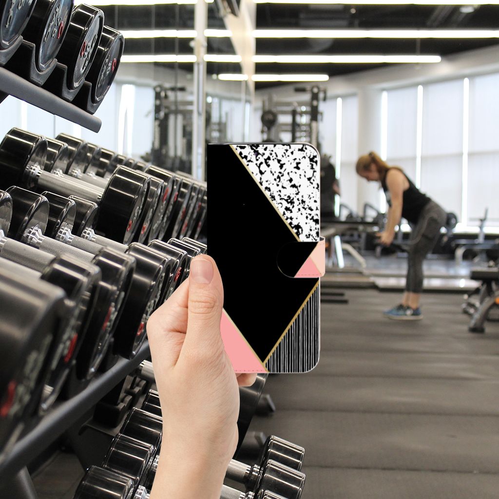 Samsung Galaxy A70 Bookcase met ruimte voor 3 pasjes Zwart Roze Vormen