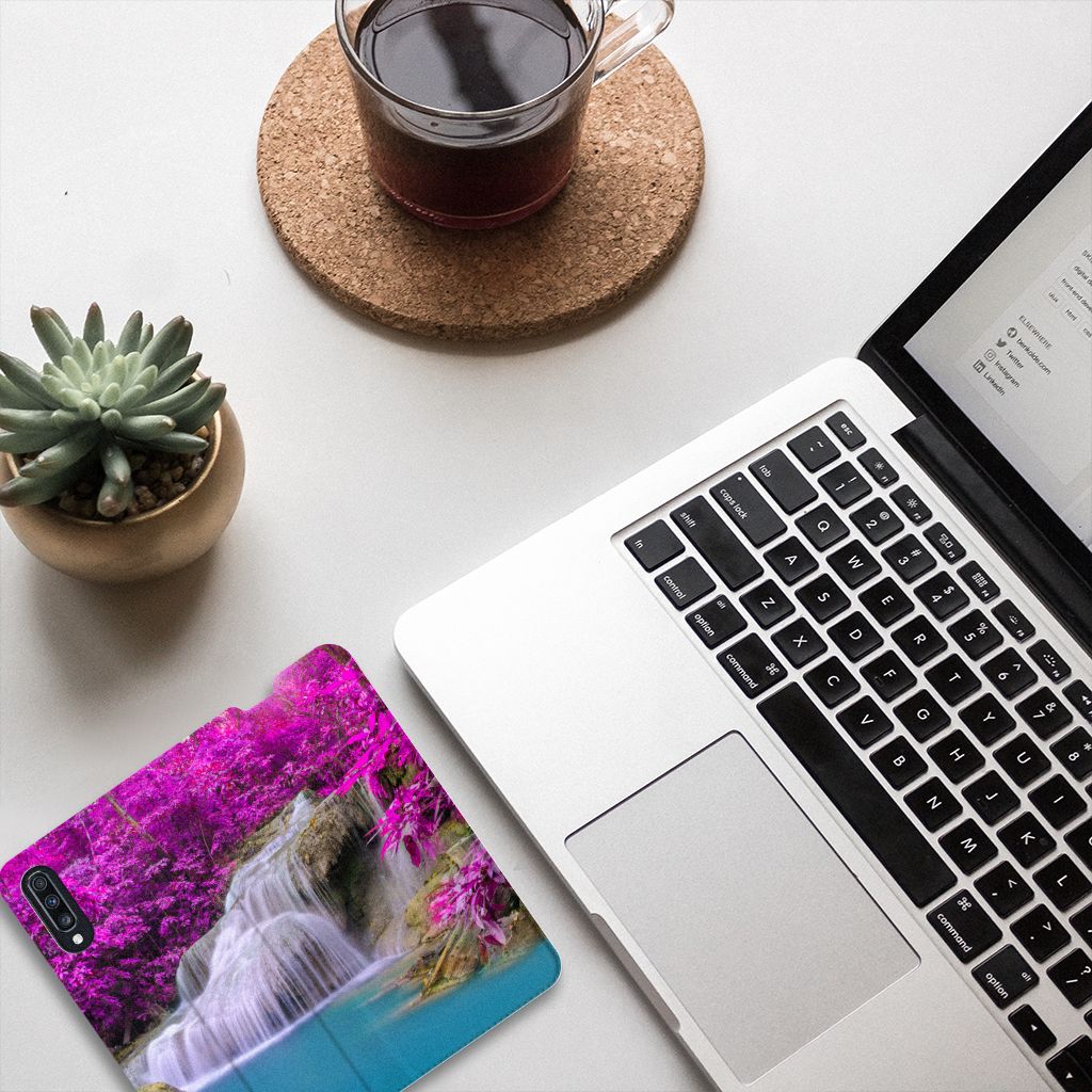 Van een waterval kun je een heel rustig gevoel krijgen, zeker als die op een Samsung Galaxy A70 Book Cover staat dat jouw smartphone perfect beschermt tegen allerlei vormen van schade zoals krassen, barsten en scheuren. In de buurt van een waterval ben je tijdens warme zomerdagen niet alleen verzekerd van aangename verkoeling, het is ook een bijzonder rustgevende ervaring. Uit onderzoek blijkt zelfs dat watervallen een helend effect hebben op allerlei aandoeningen. Extra bijzonderheid aan de stand case vormen de paarse bossen op de achtergrond. Dit smartphonehoesje beschermt jouw telefoon aan alle zijden en beschikt over een opbergvakje voor pasjes en briefgeld. De case sluit perfect af dankzij de magneten van binnen. De houder aan de binnenzijde is van TPU. Alle zijden van het hoesje worden bedrukt. Een mooiere waterval met paarse achtergrond kom je op geen enkel ander hoesje tegen.