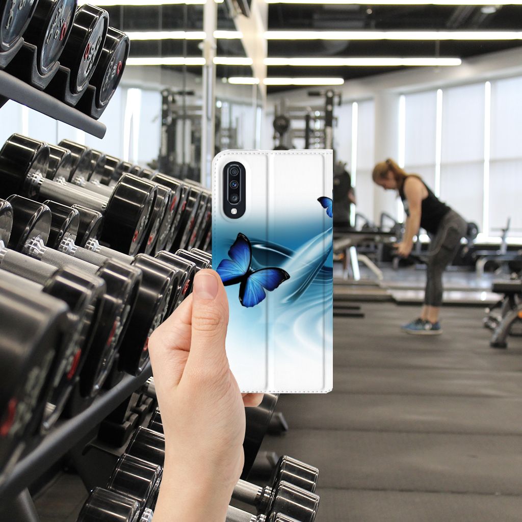 Deze vrolijke Samsung Galaxy A70 Hoesje maken met blauwe vlinders is een ware eyecatcher. De meeste vlinders hebben een onopvallende vleugelkleur, andere soorten hebben juist heldere en felle kleuren. Wij kunnen deze blauwe vlinders op een zeer handige stand case zetten. Deze hoesjes zijn het meest gewild. Met onze geavanceerde printer zetten we de afbeelding van vlinders op alle zijden van het hoesje. De case met vlinders heeft aan de binnenkant een houder waarin je jouw creditcard of ander pasje kwijt kunt. De case heeft bovendien een handige standaard. Verder is je telefoon natuurlijk maximaal beschermd met deze stand case met print van blauwe vlinders. De houder aan de binnenzijde van het design hoesje met vlinder print is van TPU.