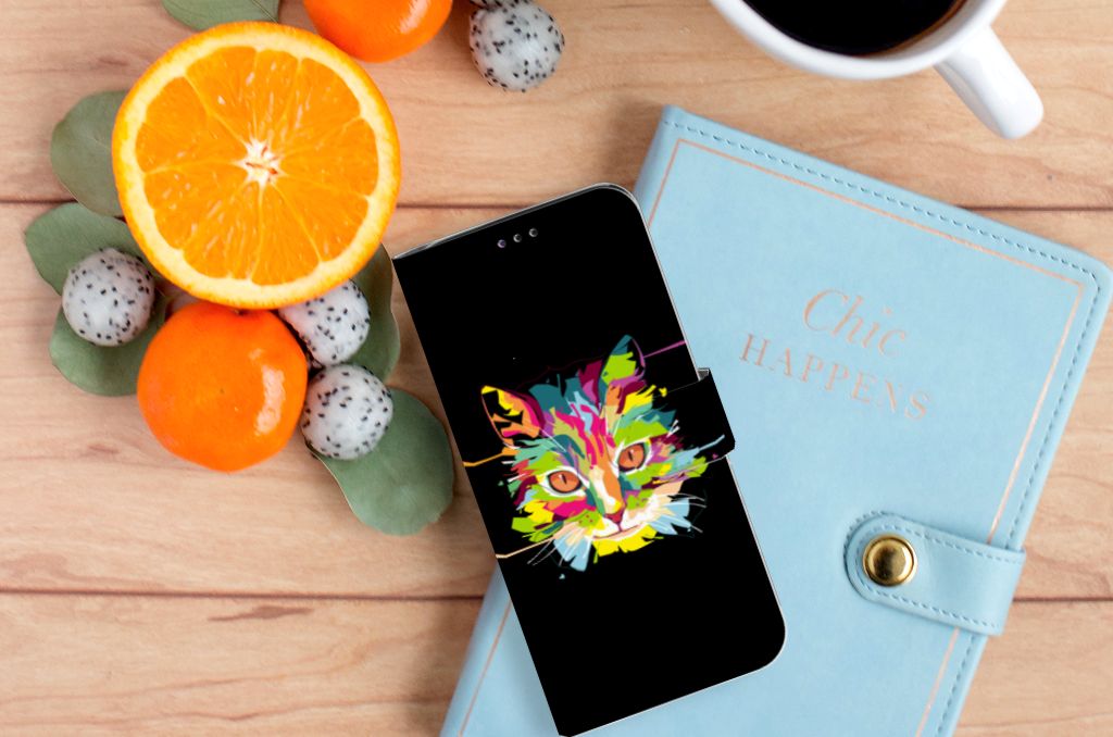 Als jij van katten houdt en op zoek bent naar een uniek hoesje, dan is dit het hoesje wat je wilt hebben. Op de voorkant van dit Leuk Hoesje vind je namelijk een mooie afbeelding van een kat in alle kleuren van de regenboog op een zwarte klassieke achtergrond. Naast dat het een mooi hoesje betreft, is het ook nog eens ontzettend handig. Zo kun je in deze bookcase wel twee á drie pasjes en briefgeld kwijt. Hiermee kun je jouw belangrijkste bezittingen op een plek bewaren in het boekhoesje en kun je jouw portemonnee voortaan thuislaten. Een bookcase heeft daarnaast ook nog het voordeel dat jouw telefoon aan alle zijdes wordt beschermd in dit leuke hoesje, dubbel zo handig dus!