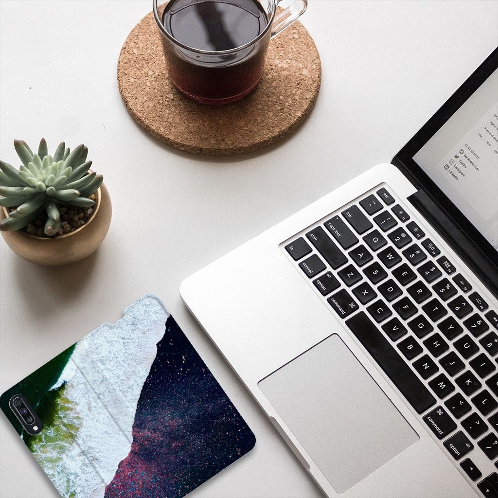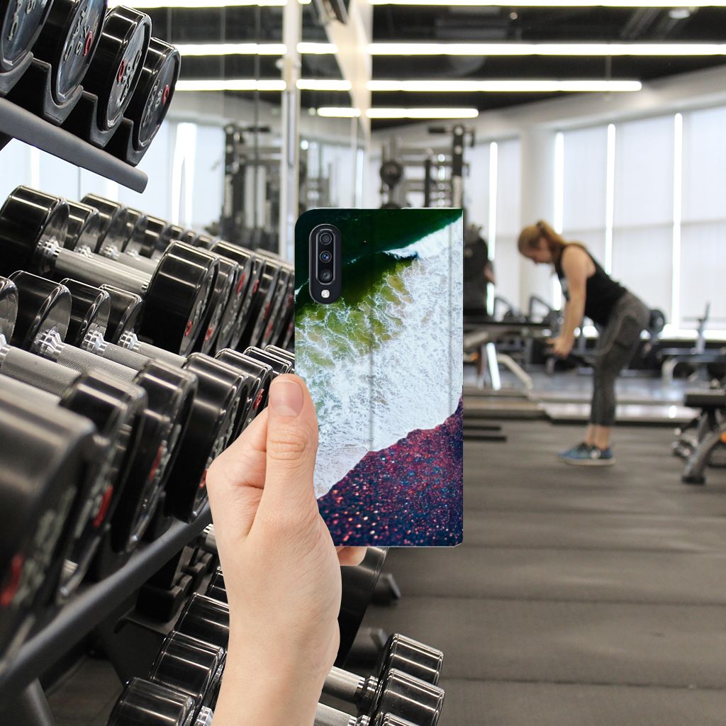 Ben je een beetje een artistiek type? Dan kan je wel eens enthousiast raken van dit smartphonehoesje. ‘Sea in Space’, zo noemt onze grafisch designer dit ontwerp. Dus mensen die van zon en zee kunnen genieten en tegelijkertijd van science fiction houden zullen deze case ongetwijfeld mooi vinden. Een beetje glitter en glamour zou je met een beetje fantasie ook nog wel kunnen ontdekken in dit design hoesje. Dit artistieke kunstwerkje is voor heel weinig geld te bestellen op onze website. Je krijgt er maximale bescherming van je Samsung Galaxy A70 voor terug. Het design staat op een Stand Case. Deze case beschermt jouw telefoon aan alle kanten en beschikt over een 1 opbergvakje en een speciale standaard. Het hoesje wordt afgesloten met een magneet aan de binnenzijde. De houder aan de binnenzijde is van TPU.