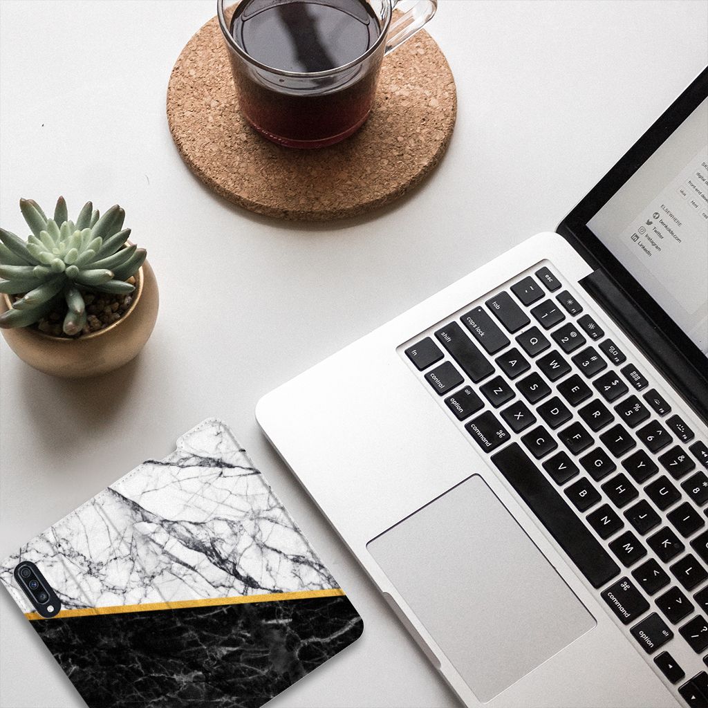 Dit design hoesje met zwartwit marmer is zeer geschikt voor jouw kostbare telefoon. Vanwege zijn prachtige lichtval en vastheid is marmer zeer gewild als bouwmateriaal. Op jouw smartphone kun je lange tijd bouwen als jij kiest voor deze hele mooie Samsung Galaxy A70 Standcase. Naast het zwart-witte marmer zijn er de diverse marmersoorten in een ruim kleurenpallet te krijgen. Deze stand case met marmer in zwart-wit wordt bedrukt op alle zijden. De case beschikt over een vakje voor een pasje en toebehoren en een magnetische sluiting aan de binnenzijde. Verder heeft de case in zwart wit marmer een houder van TPU. Wij hebben onze designer veel vrijheid gegeven met het ontwerpen dit mooie hoesje. Het resultaat zie je terug in deze stand case met zwartwit marmer, dat de ideale bescherming is voor jouw smartphone.