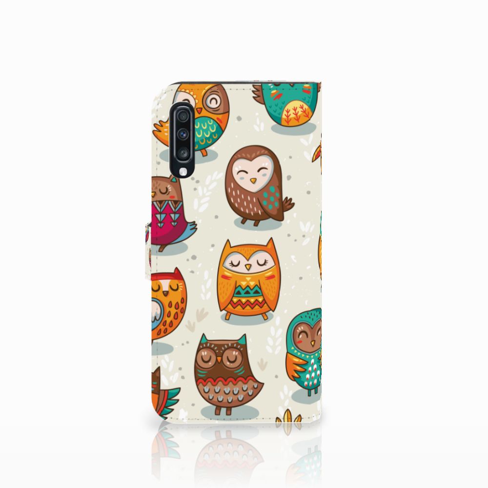 Samsung Galaxy A70 Telefoonhoesje met Pasjes Vrolijke Uilen