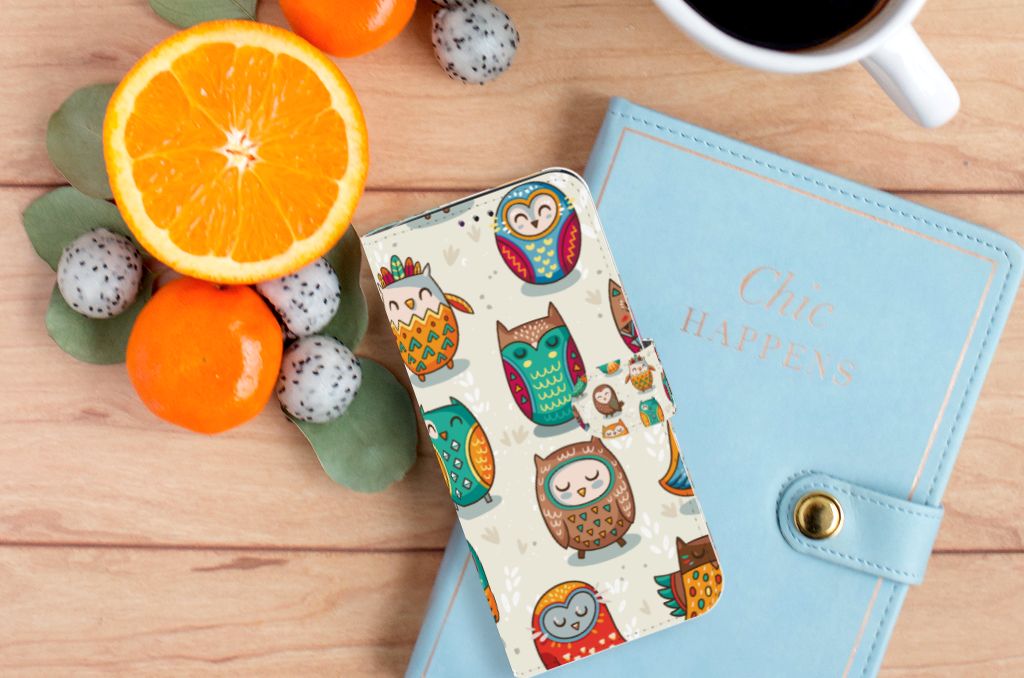 Samsung Galaxy A70 Telefoonhoesje met ruimte voor drie pasjes Vrolijke Uilen
