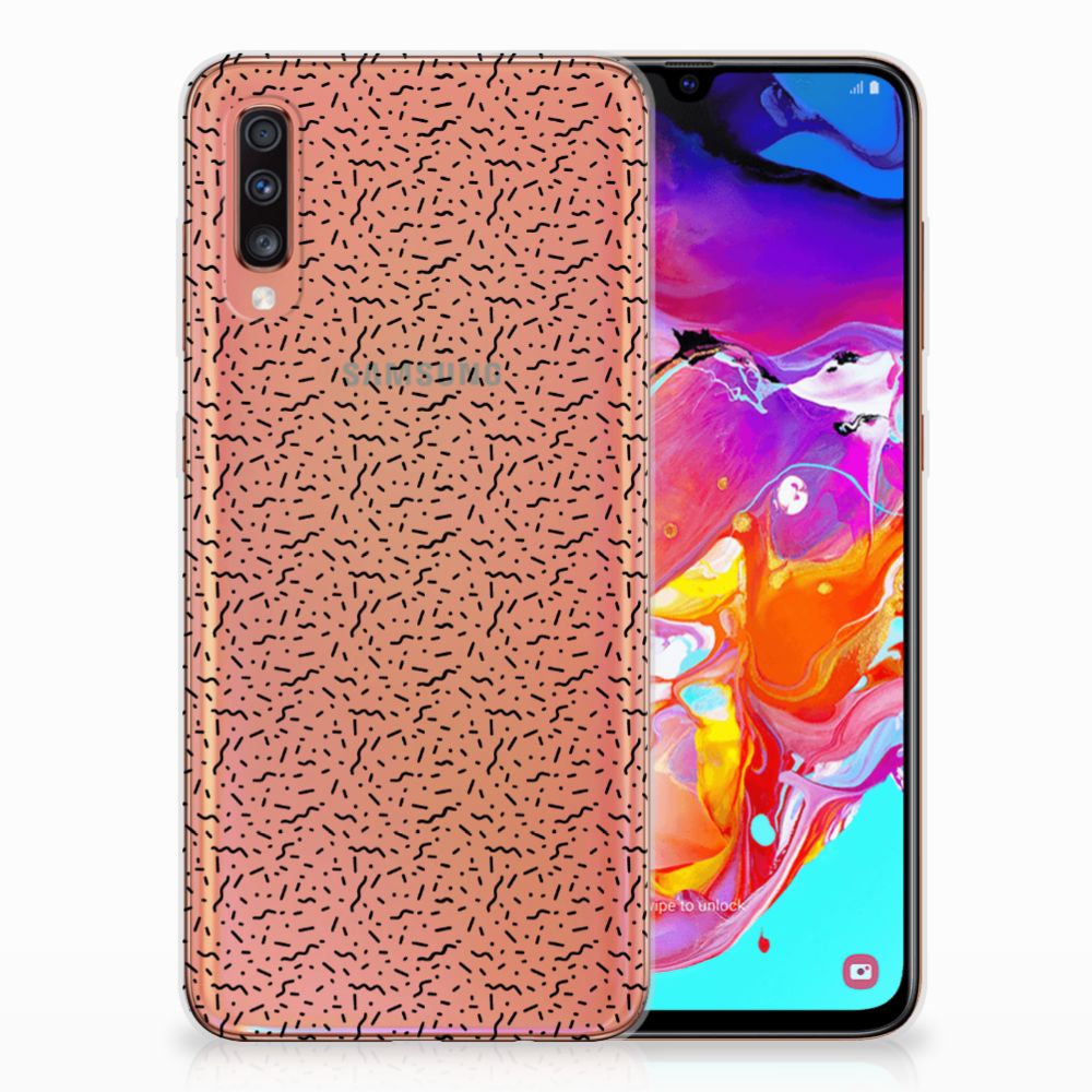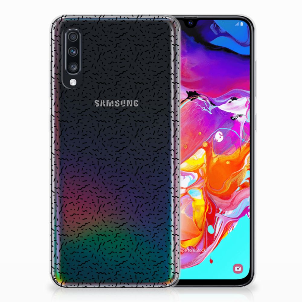 Je doet jezelf een groot plezier als je gaat voor dit hoesje met het design Stripes Dots. De streepjes staan in een bijzondere vorm op deze Samsung Galaxy A70 TPU bumper, waarmee je geen grijze muis zult zijn en gegarandeerd zal opvallen. Als je een bijzondere look wil voor je smartphone, bestel dan snel dit waanzinnig mooie product. Het telefoonhoesje is van alle gemakken voorzien en biedt maximaal comfort. Bovendien is het gemaakt van zeer flexibel materiaal. Het unieke design staat op een TPU case. Dit hoesje wordt alleen aan de bovenkant bedrukt en is zeer flexibel. De randen van het tpu hoesje blijven transparant en worden niet bedrukt met streepjes. Met dit hoesje met abstracte vorm in streepjes past jouw telefoon altijd in je broekzak.