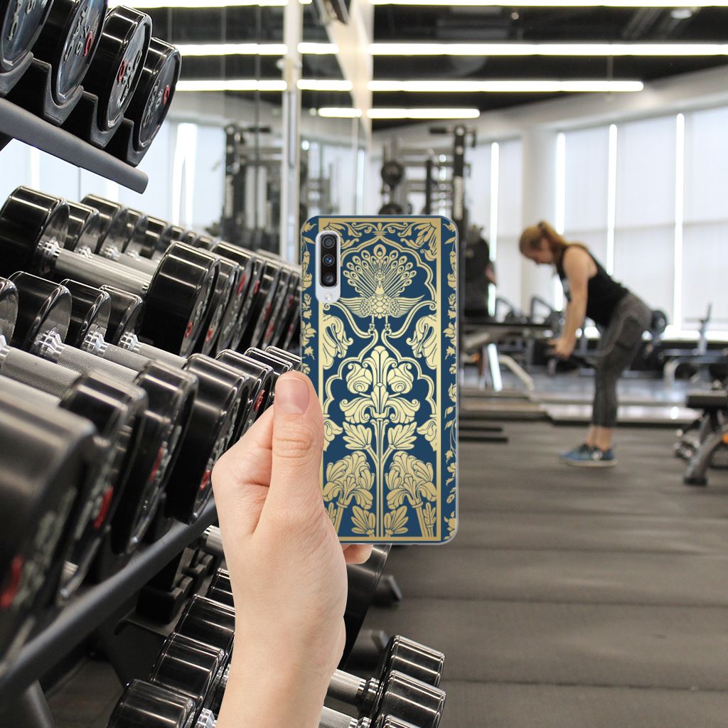 Dit koninklijke hoesje met Beige Flowers ziet er oogverblindend uit. De beige kleur geeft dit design hoesje een super fraai en chique uiterlijk. Je voelt jezelf de koning te rijk als je jouw telefoon beschermt met deze elegante case. De donkerblauwe achtergrond geeft dit design hoesje extra uitstraling en combineert goed met beige. Het hoesje ziet er zeer kostbaar uit, maar is erg goedkoop. Voor een zeer bescheiden bedrag ben je in het bezit van dit design hoesje. De case geeft jou en je Samsung Galaxy A70 extra status. Voor goedkope design hoesjes zit je goed bij B2C Telecom. Het design staat op een TPU Case. Dit hoesje wordt alleen aan de bovenkant bedrukt en is zeer flexibel. De randen van het hoesje blijven transparant en worden niet bedrukt. Met dit hoesje past jouw telefoon altijd in je broekzak.