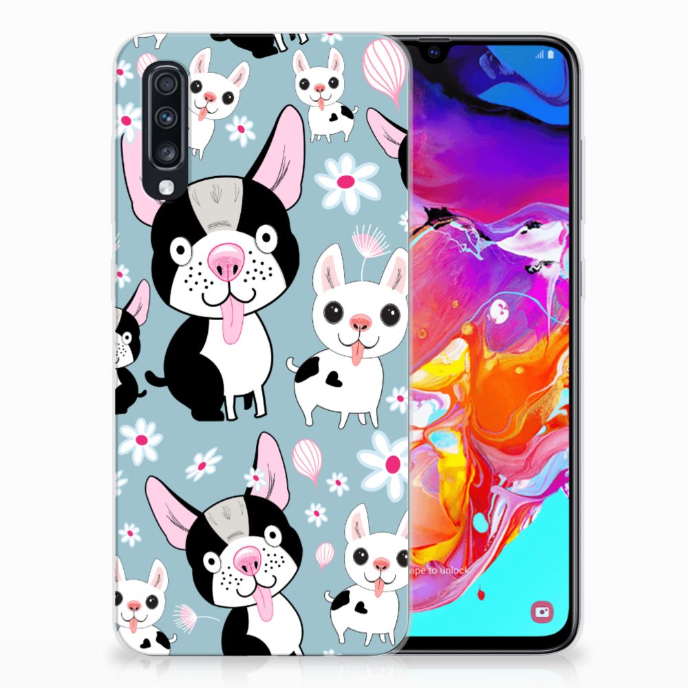 De Hondjes op deze Samsung Galaxy A70 TPU Hoesje ogen zeer aandoenlijk. Deze hondjes met zwart-witte vacht willen jou zelfs bijna in je armen springen, zo blij zijn ze dat ze op dit design zijn gezet. Het tpu hoesje is een zeer flexibele smartphone case. Dit hoesje met zwarte en witte hondjes is niet alleen zeer praktisch vanwege de opstaande randen aan de voorzijde, maar beschermt je smartphone ook nog eens zeer goed. Op de bovenkant van de tpu case, die altijd in je broekzak past, staan de vrolijke hondjes. Veel Nederlanders hebben momenteel een hond als huisdier. Honden zijn dus erg populair. Net als deze tpu case, die wel eens het ideale cadeautje zou kunnen zijn voor jouw vriendin of dochter. De case blijft aan de zijkanten doorzichtig.