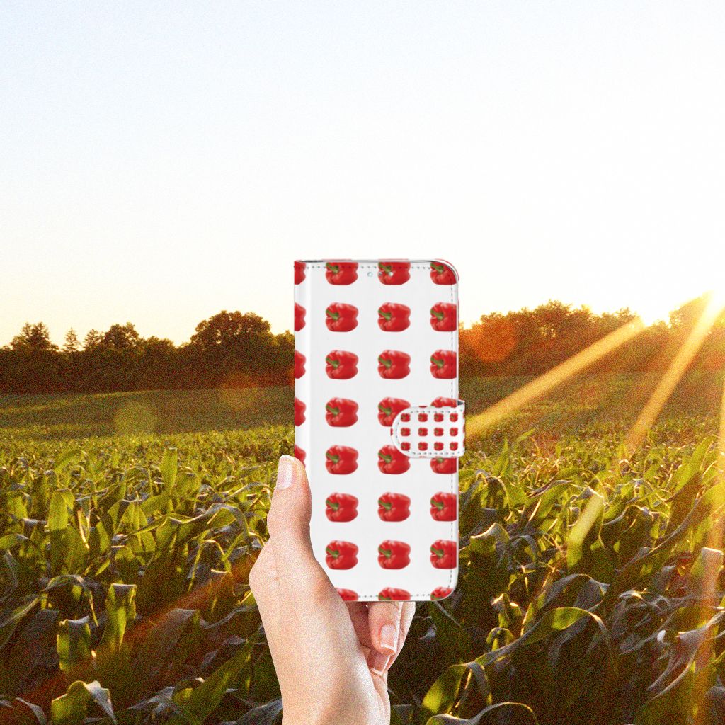 Er zit pit in jouw Samsung Galaxy A71 Book Cover dankzij dit design met rode paprika’s. Paprika’s zijn er in allerlei kleuren en vormen en ze hebben gemeen dat ze heel erg gezond zijn. De rode paprika’s op deze case staan op een grijs met witte geblokte achtergrond en vormen een opvallende verschijning. Heb jij ooit iemand in je nabije omgeving rond zien lopen met een design hoesje met rode paprika’s? Waarschijnlijk niet. Dit boekhoesje met rode paprika’s beschermt jouw telefoon aan alle zijden en beschikt over verschillende opbergvakjes voor pasjes en briefgeld. De case sluit perfect af met het magnetische lipje aan de buitenkant. Zeker weten dat je met dit hoesje met rode paprika’s een smartphone accessoire te pakken hebt waarmee je jezelf in de schijnwerpers zet. De houder aan de binnenzijde van het boekhoesje met rode paprika’s is van TPU. Als je andere kleuren paprika’s op je hoesje wilt, raden we je aan ons assortiment design hoesjes te bekijken of zelf een hoesje te ontwerpen.
