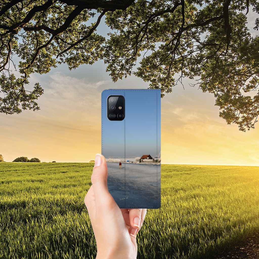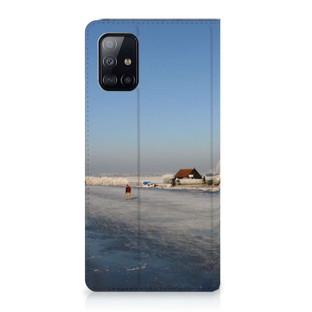 Deze mooie Samsung Galaxy A71 Book Cover met schaatsers is een typisch Hollands product. Schaatsen is een van de oudste Nederlandse volkssporten en wordt van jongs af aan geleerd. Hoewel schaatsen ook in andere landen van het noordelijk halfrond in trek is, met name in Scandinavië (Zweden, Finland, Noorwegen), blinken Nederlanders er pas echt in uit. Mocht jij met dit hoesje met schaatsers in het buitenland aankomen zetten, dan is het meteen duidelijk waar je vandaan komt. Deze stand case is perfect op maat gemaakt en heeft een vakje voor een pasje of briefgeld. Daarnaast is de magneet aan de binnenkant zeer handig. Alle zijden van de case worden bedrukt met schaatsers en de houder aan de binnenzijde is van tpu. Dit is erg flexibel materiaal. De case heeft ook een standaard.