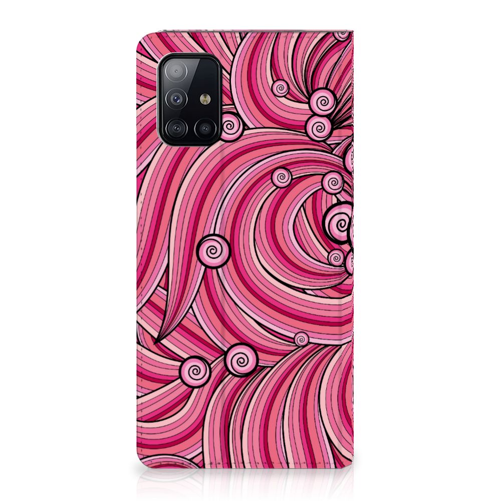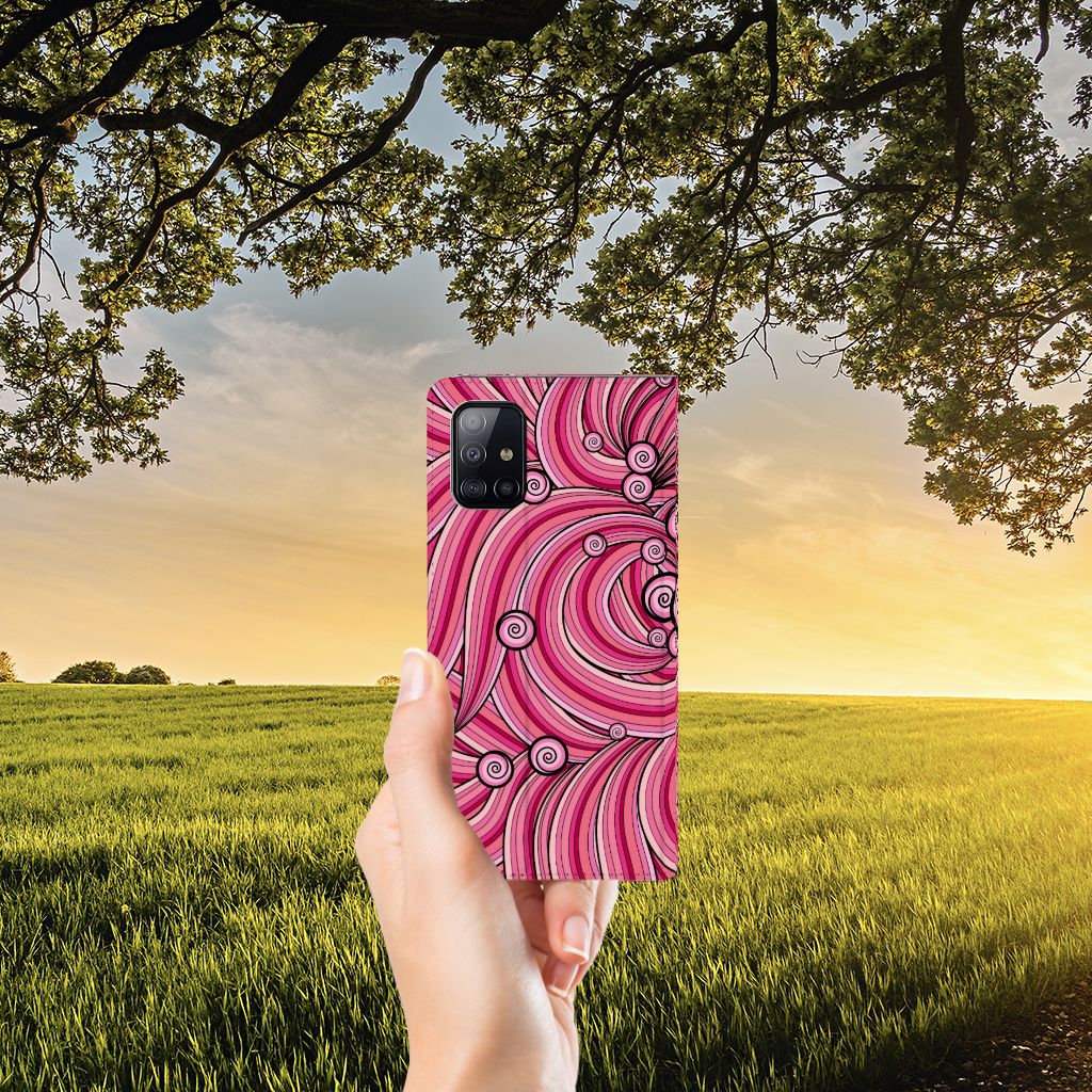 Samsung Galaxy A71 Book Case Zwart Roze Vormen