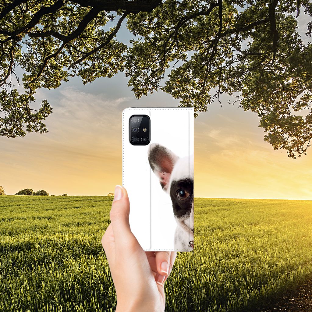 Honden zijn voor veel mensen hun lievelingsdier. Er zijn erg veel verschillende soorten honden, van allerlei verschillende rassen. We hebben een Franse bulldog op onze design hoesjes gezet. Onze smartphone hoesjes met Franse bulldog zien er zeer aandoenlijk uit. Deze Samsung Galaxy A71 Hoesje maken is niet alleen zeer praktisch vanwege het opbergvakje en de standaard, maar beschermt je smartphone ook nog eens optimaal. Op alle zijden van het design hoesje staat de Franse bulldog. De Franse bulldog is populair. Net als dit stand hoesje, dat aan de binnenzijde is voorzien van een magneet en een houder van TPU. Hij kan slecht tegen te weinig aandacht en een onvriendelijke behandeling. Verder is de Franse bulldog gebaat bij duidelijke regels. Anders kan de Franse bulldog zelf zeer onvriendelijk worden, wat je niet zou zeggen als je dit hoesje ziet.