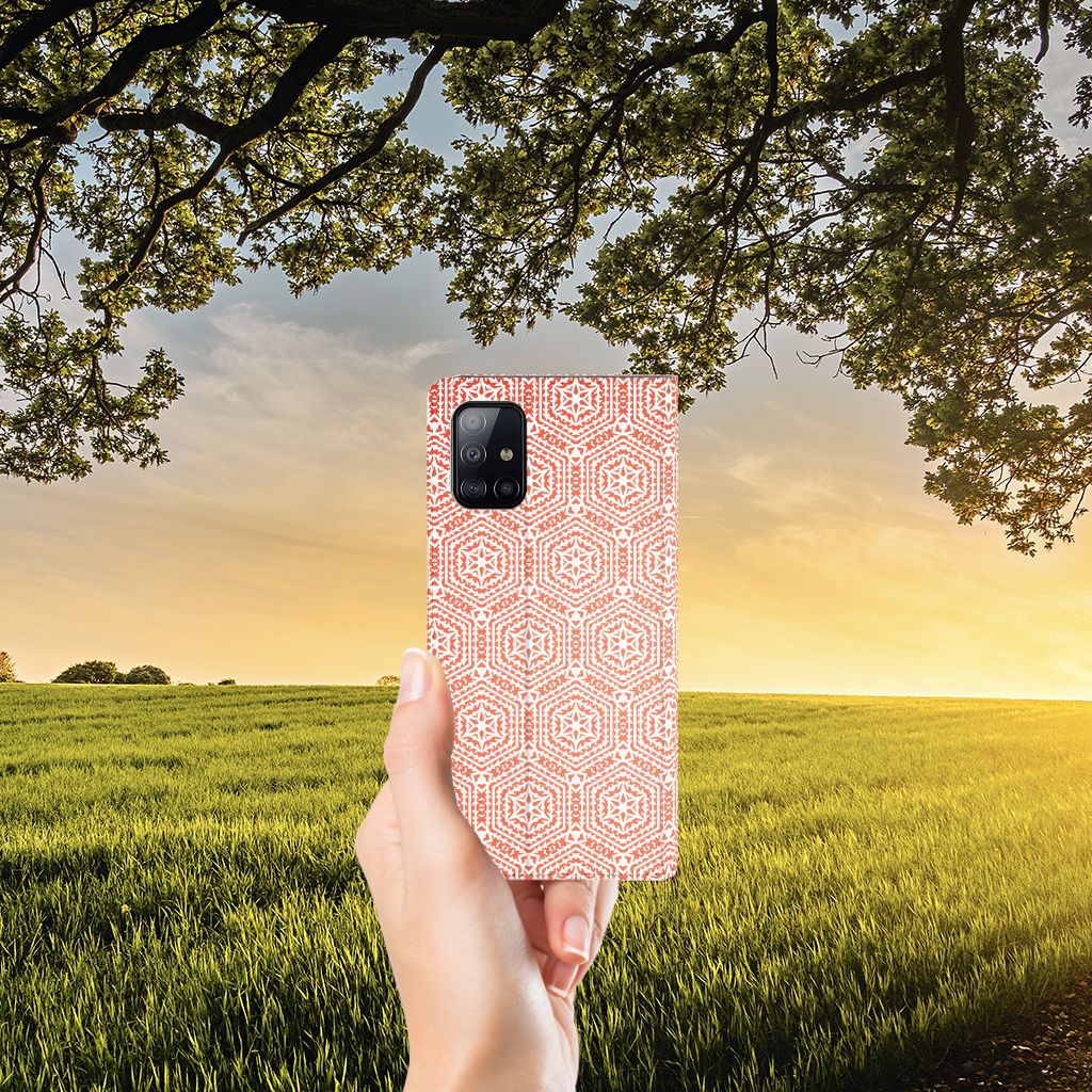Deze Samsung Galaxy A71 Hoesje met Magneet met Pattern Orange vind je in geen enkel andere winkel of webshop. Heb je het eenmaal in je bezit, dan wil waarschijnlijk nooit meer een ander smartphone hoesje meer. Het design met oranje en wit patroon is bijzonder smaakvol en op maat gemaakt voor jouw smartphone. Dat is de kracht van het hoesje. Met dit design hoesje met oranje en wit patroon zal je ook heel erg opvallen. Dit is voor veel smartphone gebruikers een belangrijk voordeel. Dit zeer populaire smartphone hoesje heeft 1 vakje en is aan alle zijden bedrukt. Verder heeft de case een standaard en een magneet aan de binnenkant. Het oranje patroon staat op deze stand case erg goed. De houder is van TPU, de buitenzijde van PU-leer.