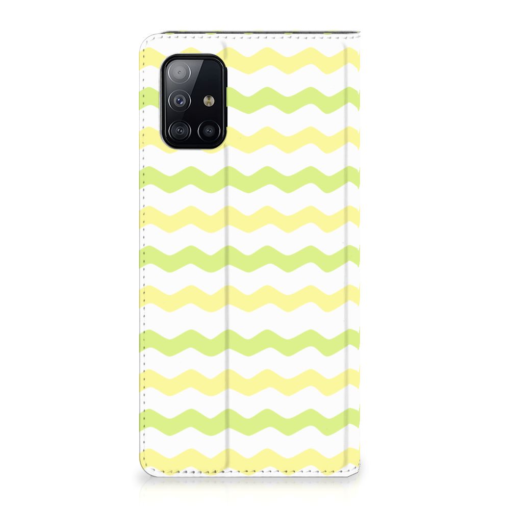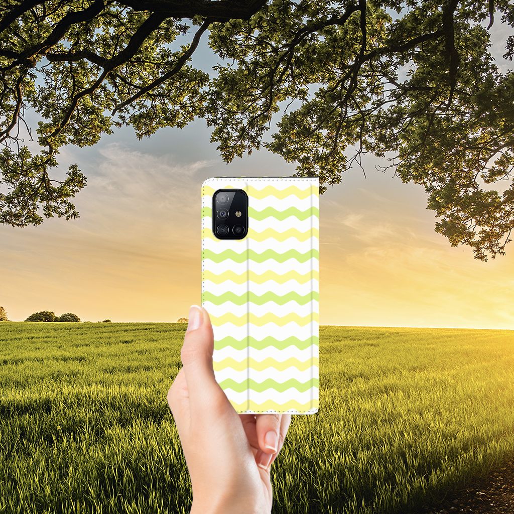 Dit Waves Yellow design hoesje met licht groene en gele golven is speciaal ontworpen voor jouw telefoon. We hebben een vleugje lichtgeel toegevoegd, zodat de case er een beetje spannender en leuker uitziet. Dit licht groene hoesje met licht groene golven ziet er oogstrelend uit. Het wordt in ons eigen magazijn bedrukt, in zeer goede kwaliteit inkt. Wij kunnen dus een zeer duurzaam hoesje met licht groene golven garanderen. Dit hele mooie Samsung Galaxy A71 Hoesje met Magneet heeft vele extra’s. Is dit licht groene design hoesje je op het lijf geschreven? Grijp dan nu je kans. Deze stand case met licht groene golven beschermt jouw telefoon aan alle kanten en beschikt over een 1 opbergvakje en een speciale standaard. Het licht groene hoesje wordt afgesloten met een magneet aan de binnenzijde. De houder aan de binnenzijde is van het flexibele TPU. Alle zijden van de stand case worden bedrukt.
