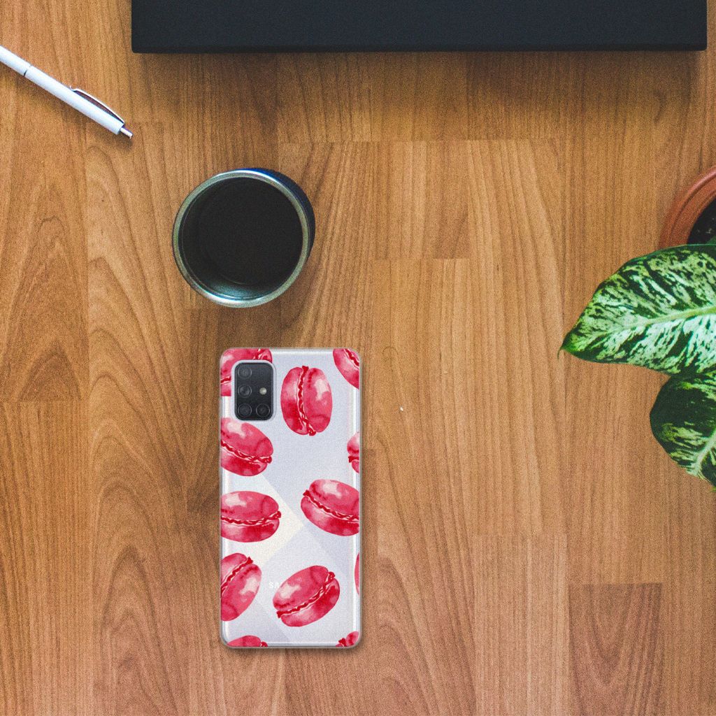 Dit tpu hoesje met Pink Macarons is een zeer opvallende bescherming voor jouw smartphone. Macarons zijn Franse koekjes: kleine, rond en luchtig. Ze worden in veel verschillende smaken gemaakt, herkenbaar aan de verschillende kleuren zoals chocolade (donkerbruin), mokka (middenbruin), kersen (rood), pistache (groen), aardbei (roze), framboos (karmijn). Deze kleuren kun je niet allemaal zien op dit fraaie design hoesje met roze macarons. Heb je altijd al een Samsung Galaxy A71 Siliconen Case willen hebben met roze macarons? Grijp dan nu je kans. Deze case heeft zeer veel goede eigenschappen, zoals elastisch vermogen, flexibiliteit en schokbestendigheid. Dit design hoesje met roze macarons wordt aan de bovenkant bedrukt, de zijkanten blijven doorzichtig. De case heeft opstaande randen aan de voorzijde en beschermt samen met een screenprotector jouw telefoon perfect. De case heeft ook een handige standaard.