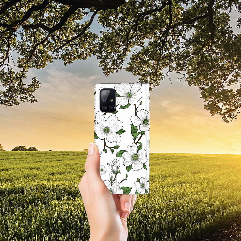 Ben je op zoek naar een uniek telefoonhoesje voor je Samsung Galaxy A71? Dan ben je bij B2C Telecom aan het juiste adres! Speciaal voor jou hebben we dit prachtige Dogwood Flowers design in onze collectie hoesjes opgenomen. Het design wordt bedrukt op een Smart Cover en heeft een vakje aan de binnenkant voor een pasje. Het fijne aan dit hoesje is dat je het als standaard neer kunt zetten. Hierdoor geniet je nog meer als je een filmpje aan het kijken bent op je telefoon. Het hoesje wordt afgesloten door magneten aan de binnenkant. Wil je dit design hoesje nog iets extra's geven? Voeg dan gratis je naam of een quote toe! Is dit design hoesje toch niet helemaal wat je zocht? Ontwerp dan zelf een hoesje in ons ontwerpprogramma.