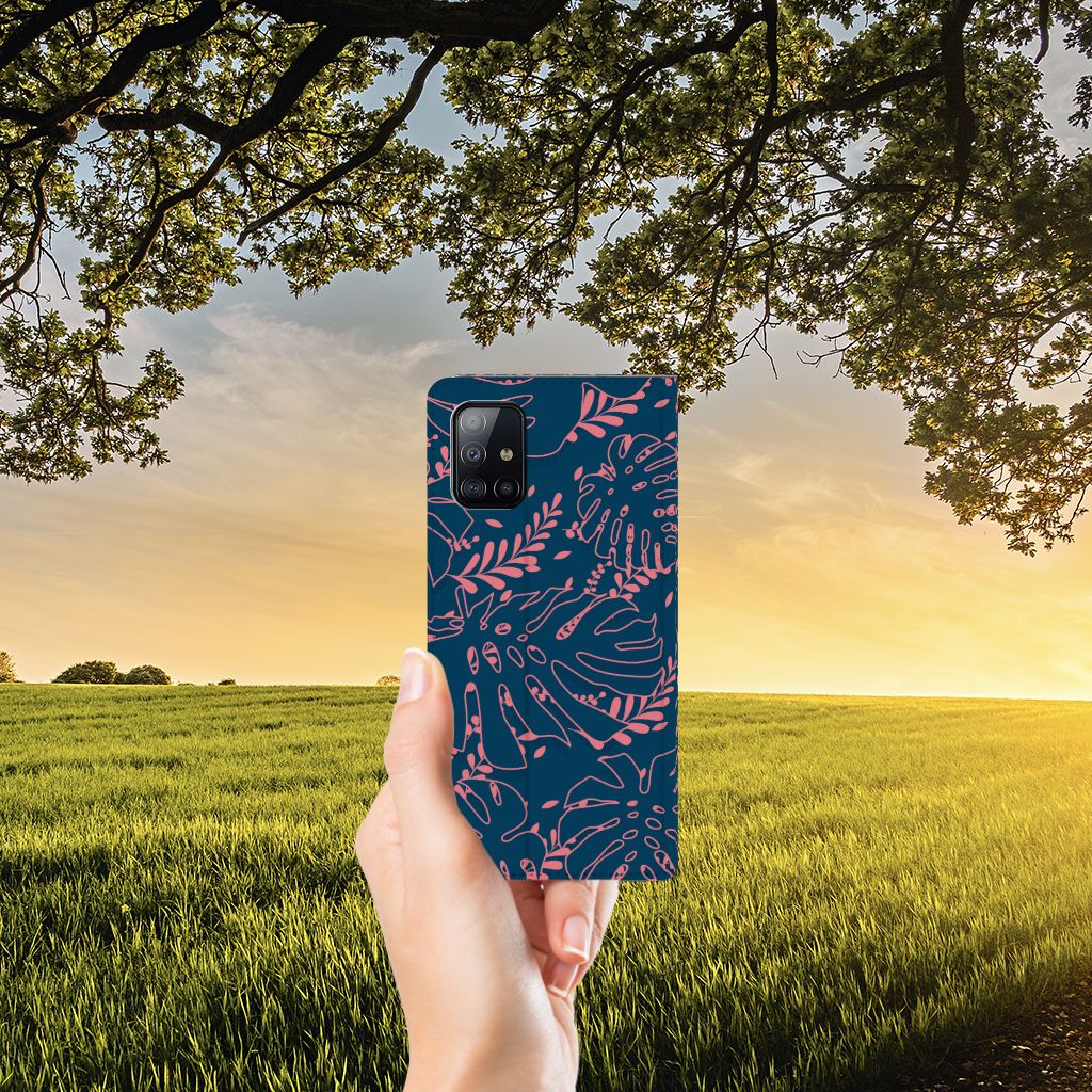 Je voelt je verbonden met de natuur als je kiest voor deze Samsung Galaxy A71 Smart Cover met print van roze bladeren op een blauwe achtergrond. De print bestaat uit verschillende roze bladeren en dit zorgt voor een fraai decoratief geheel. Met dit patroon van roze bladeren op een blauwe achtergrond creëer je een opvallende uitstraling voor jouw smartphone. Jij doet er verstandig aan om je telefoon te beschermen met dit design hoesje met roze bladeren op een blauwe achtergrond, die staan op een stand case. Dit hoesje kenmerkt zich onder meer door het handige vakje aan de binnenzijde en de magnetische sluiting aan de binnenzijde. Voel jij jezelf happy bij een beeld van roze bladeren op een blauwe achtergrond, dan is deze stand case met print een uitstekende optie. Het beschermt jouw telefoon aan alle zijden. Het TPU aan de binnenzijde klemt zich perfect om jouw smartphone.