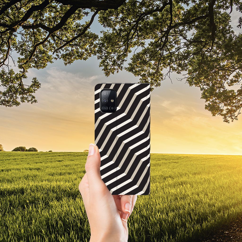 Neig je sterk naar een stand case waar je lekker van de war kunt raken? Of beter nog, waar mensen in jouw omgeving van in de war raken als die met jouw telefoon aan de haal wil gaan? Kies dan voor dit smartphone hoesje met de print van een Illusion. Een Samsung Galaxy A71 Stand Case met illusie ziet er zeer opvallend uit. Leuk als je klaar bent met doorsnee hoesjes. Een illusie is een zinsbegoocheling, een schijnbare werkelijkheid of een onjuist idee van de werkelijkheid. Weet dus wat je koopt met dit hoesje.