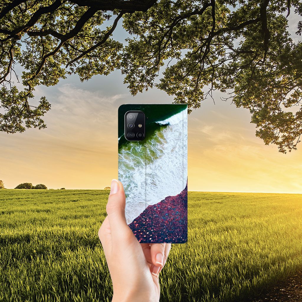 Ben je een beetje een artistiek type? Dan kan je wel eens enthousiast raken van dit smartphonehoesje. ‘Sea in Space’, zo noemt onze grafisch designer dit ontwerp. Dus mensen die van zon en zee kunnen genieten en tegelijkertijd van science fiction houden zullen deze case ongetwijfeld mooi vinden. Een beetje glitter en glamour zou je met een beetje fantasie ook nog wel kunnen ontdekken in dit design hoesje. Dit artistieke kunstwerkje is voor heel weinig geld te bestellen op onze website. Je krijgt er maximale bescherming van je Samsung Galaxy A71 voor terug. Het design staat op een Stand Case. Deze case beschermt jouw telefoon aan alle kanten en beschikt over een 1 opbergvakje en een speciale standaard. Het hoesje wordt afgesloten met een magneet aan de binnenzijde. De houder aan de binnenzijde is van TPU.