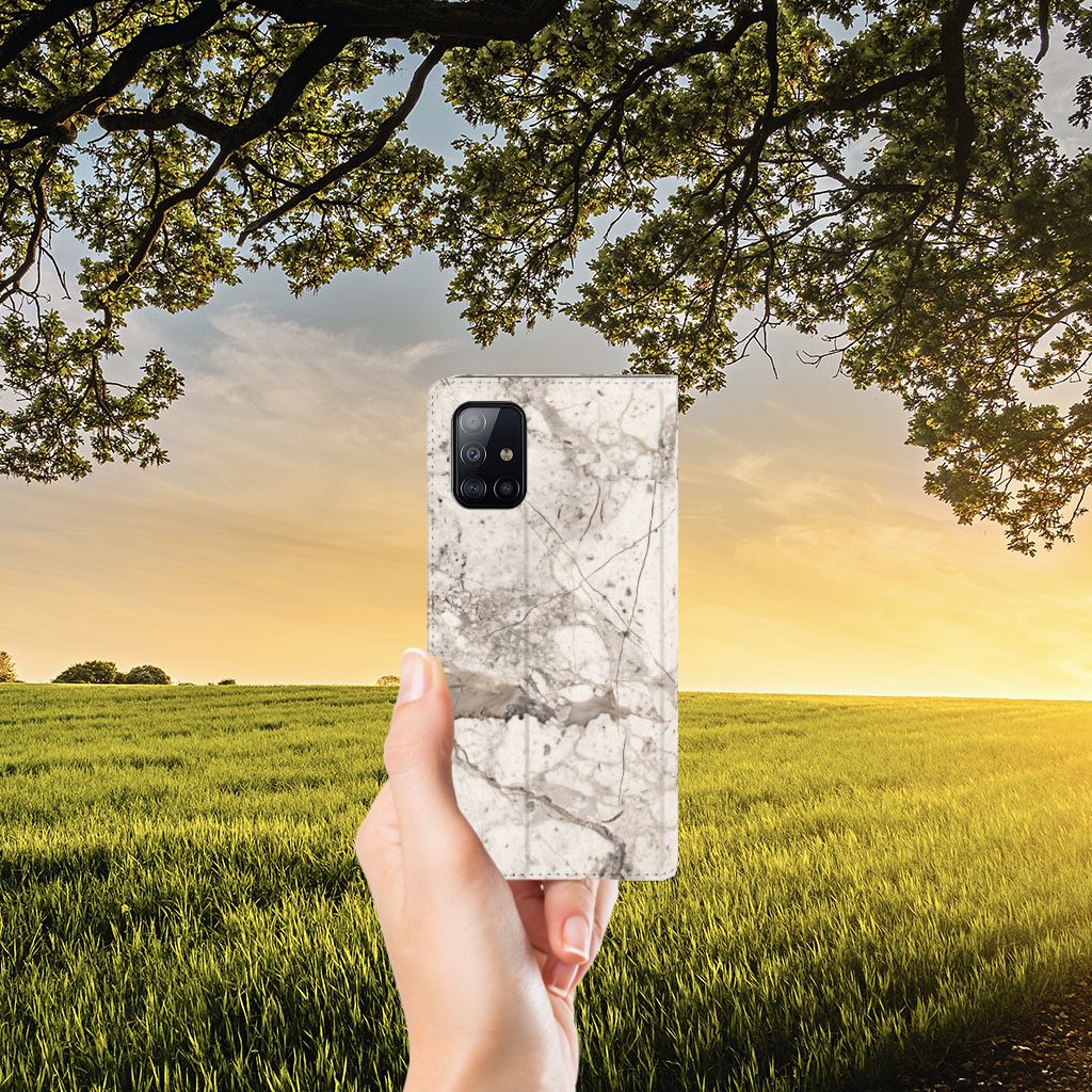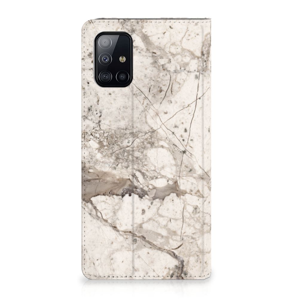 Dit design hoesje met Marmer Beige is voor de artistieke personen onder ons. De Grieken en Romeinen wisten het steen al te waarderen door het als bouw- en bekledingsmateriaal toe te passen. Naast het witte Carrara marmer met haar zacht grijze geaderde belijning zijn de diverse marmersoorten in een ruim kleurenpallet te krijgen. We hebben verschillende kleuren op design hoesjes gezet, zoals in dit geval beige marmer. Dit is een Samsung Galaxy A71 Standcase met marmer in beige kleur. Het marmer wordt bedrukt op alle zijden van een stand case, die beschikt over 1 vakje voor een pasje en toebehoren en een magnetische sluiting aan de binnenkant. Verder heeft de case een houder van TPU. De rijkheid aan kleuren en varianties in afwerking geeft designers de vrijheid om met marmer hele mooie architectonische projecten te realiseren. Wij hebben onze designer ook veel vrijheid gegeven. Het resultaat zie je terug in deze stand case met beige marmer, dat de ideale bescherming voor jouw smartphone biedt.